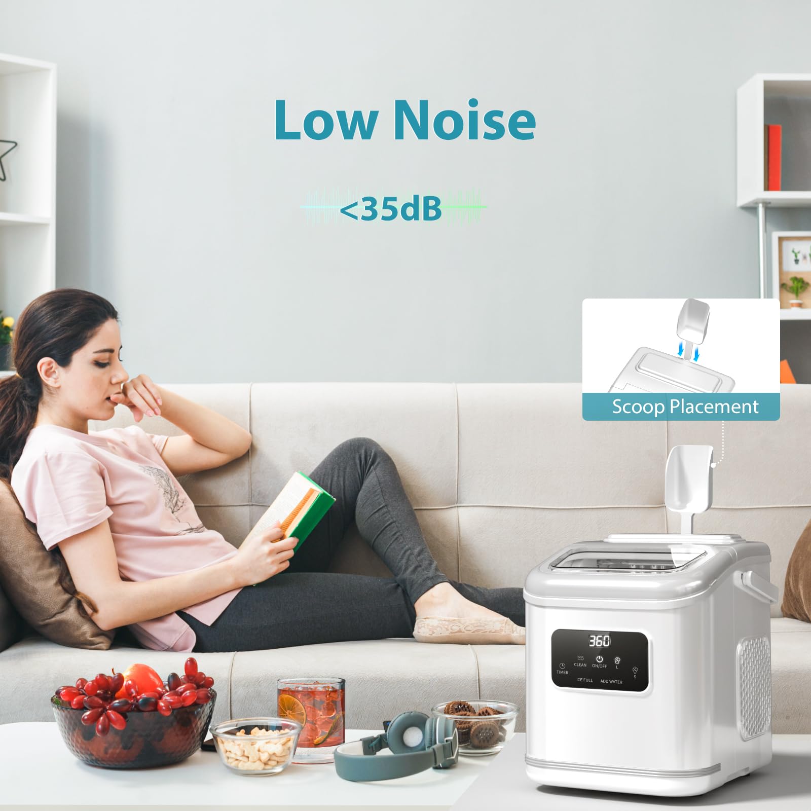 Fast ice making with low noise: 9 ice cubes can be made in 6 minutes at the earliest, a round of ice-making time is about 6-13 minutes. Within 24 hours, 26 pounds of ice can be made. The noise during ice making is lower than 35 dB and it can run quietly