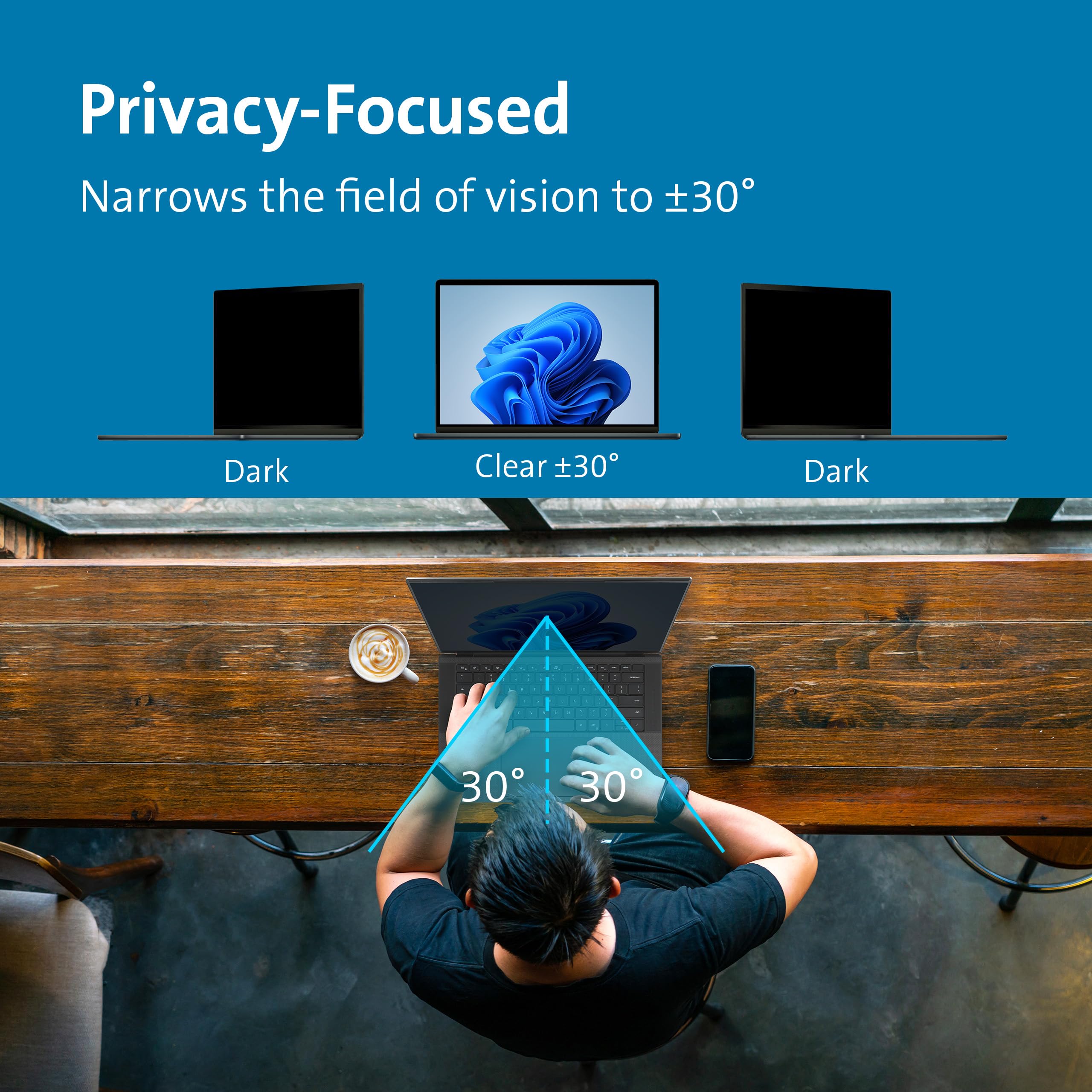Removable 14 inch Privacy Screen for Laptop - Limited viewing angle narrows the field of vision to +/- 30 degrees helping keep the information on your screen private and reducing the chances of a visual data breach in the office or in public