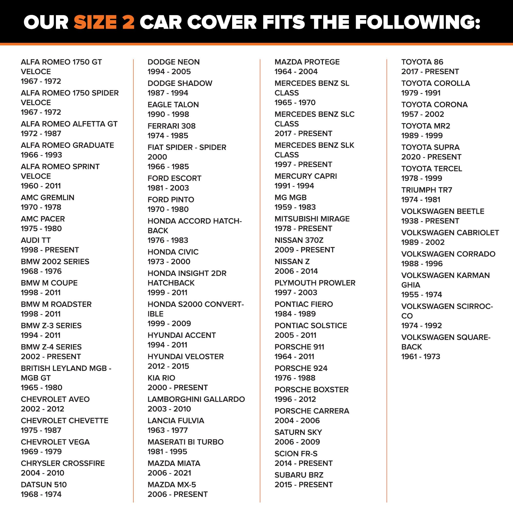 FITS MID-SIZE VEHICLES WITH EASE: Sized at 170" L x 60" W x 48" H to fit a wide range of popular makes and models