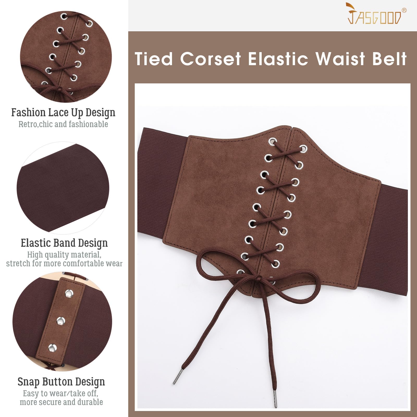 CLASSIC DESIGN– Classic vintage style leather lace-up tied waspie corset belt, quality PU leather front sewed with well elastic wide band, fastened by 3 snap buttons, which is easy to put on and remove. This waspie corset belt is super comfortable to wear. Flatters your waist. The 7.6" width prevents dress belt from rolling up or rolling down in wearing.