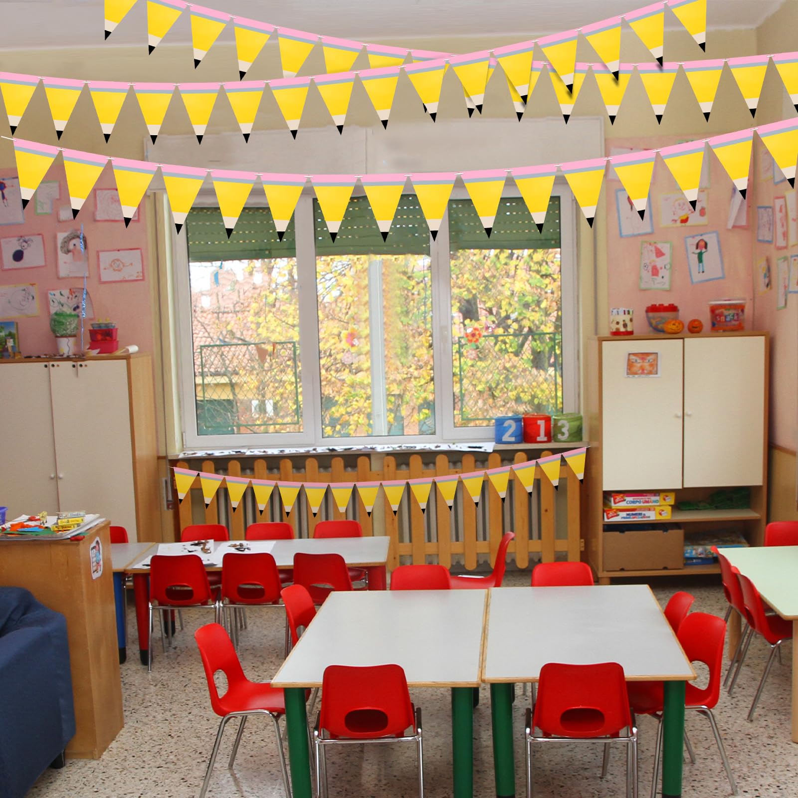 Wide Range of Applications: from classrooms to parties, the paper garland pencil shape serves a wide range of applications; Suitable for the start of the school year to decorate classrooms, windows, doors, porches, walls and other places; Create a cheerful classroom atmosphere