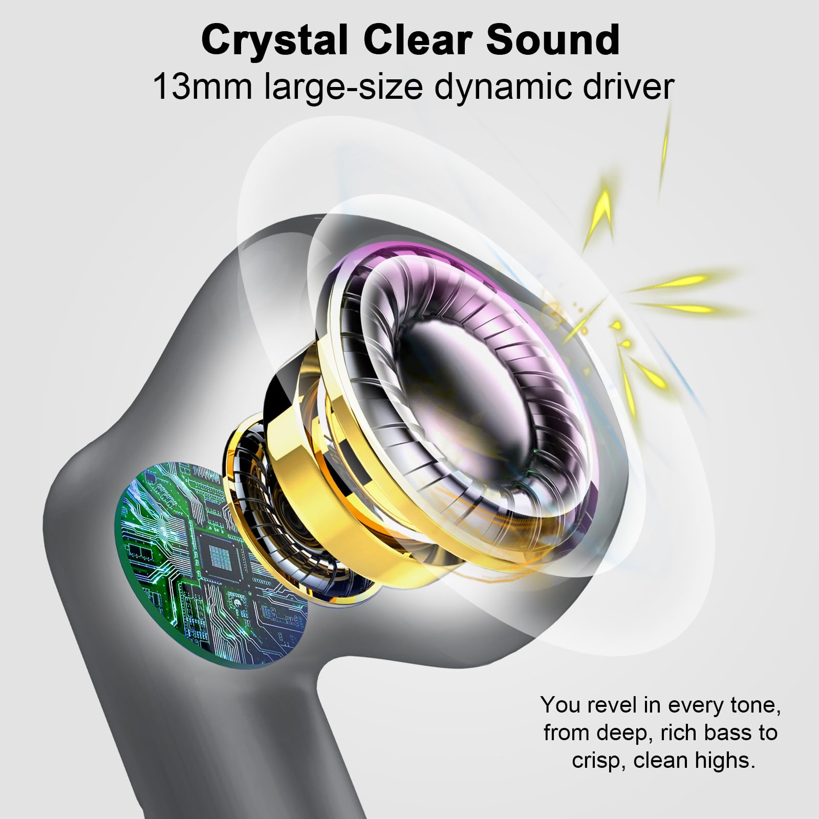 Bluetooth 5.3, effortless pairing: the advanced Bluetooth 5.3 technology delivers a stable, low-latency wireless connection for high-quality sound(music or call). Also, the Bluetooth earbuds can connect automatically to the Bluetooth of your mobile phone when you open the charging box, avoiding complicated operations and saving waiting time.
