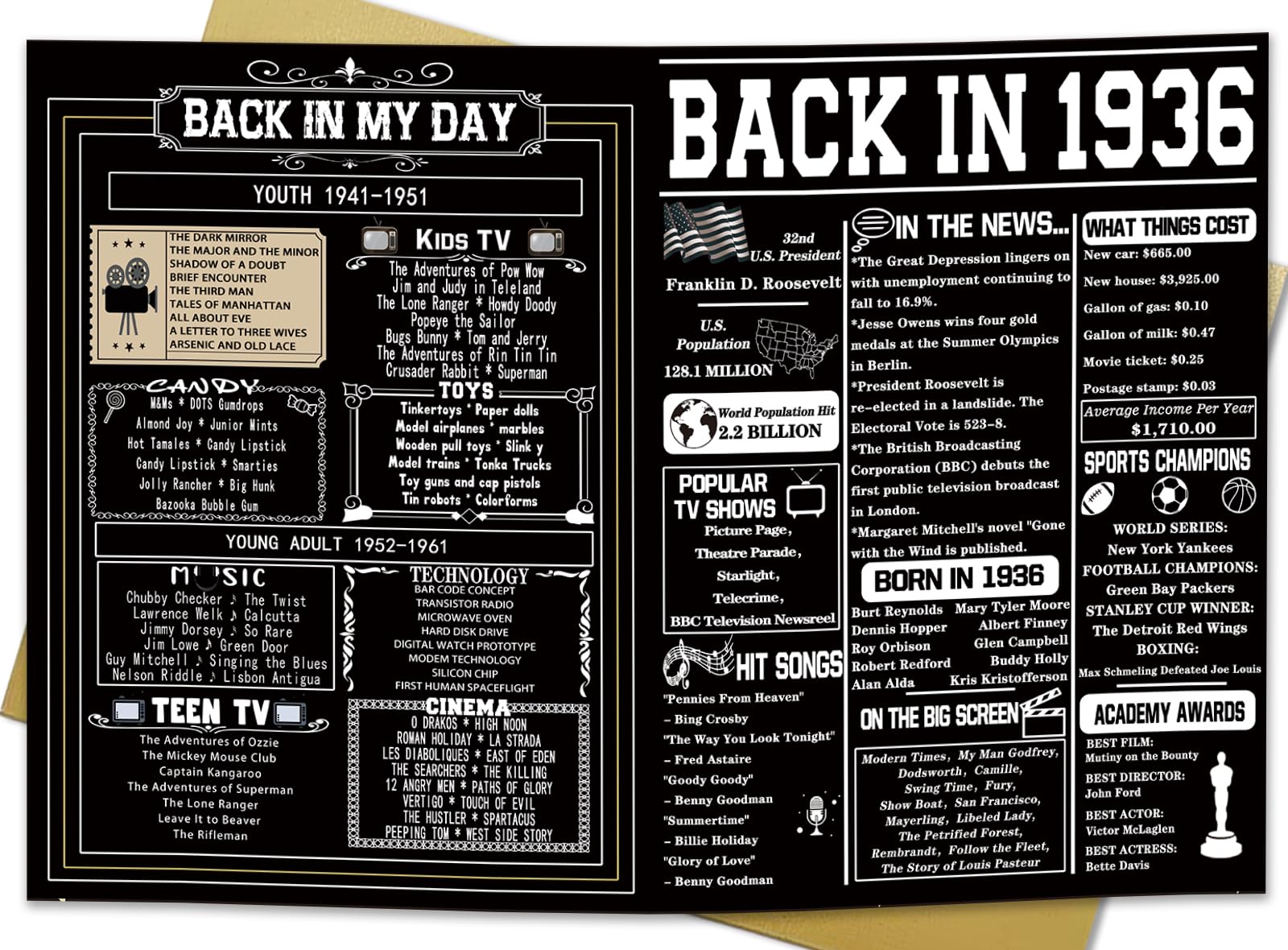 FUN MEMORY - This card contains popular TV shows, famous people born, hit songs, filled with news and events from the past.