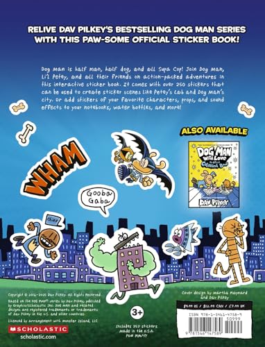 Relive your favorite moments from Dav Pilkey's bestselling Dog Man series with this paw-some official sticker book! Dog Man is half man, half dog, and all Supa Cop! You can join Dog Man, Petey, Lil Petey, and all their friends on their action-packed adventures in this interactive sticker book based on the bestselling book series. This book comes with twelve sheets of stickers -- over 250 stickers total! -- that can be used to create sticker scenes and decorate notebooks, water bottles, and more. This sticker book is hours of fun for any Dog Man fan!