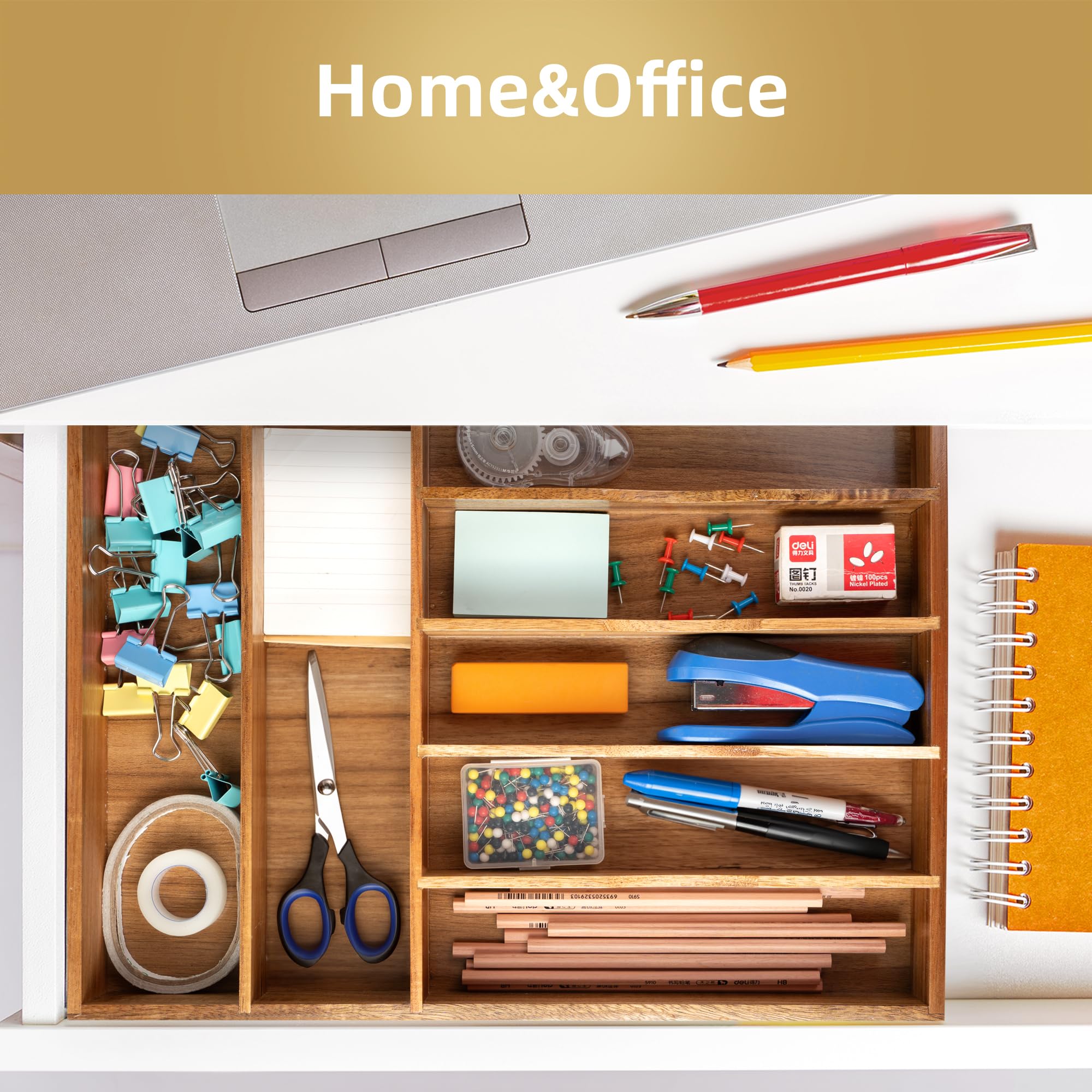 Our acacia wood drawer organizer is perfect for kitchen storage, for silverware tray&utensil tray &flatware holder&cutlery drawer organizer, knife drawer holder, easily store kitchen gadgets. The flatware organizer for drawer is suitable for home and workplace. Put your usual items in it and you can find it quickly. Moreover, our silverware holder looks orderly, with clear levels, allowing the space to be used rationally. Also, the cutlery organizer looks simple and elegant, and has a wide range of uses.