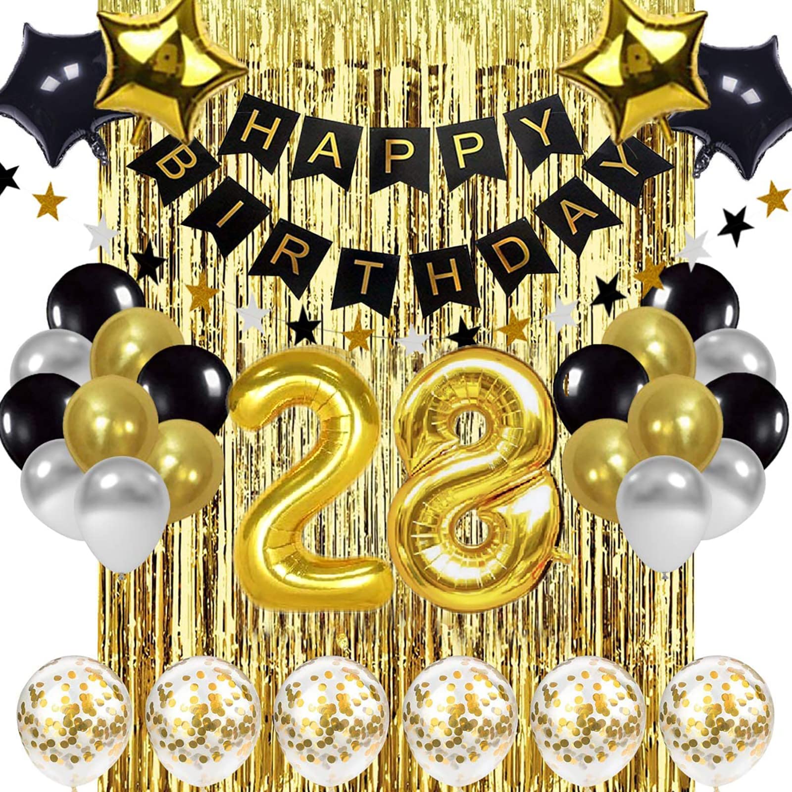 Happy 28th Birthday Cake Topper, Black Gold Glitter Birthday Cake Topper, 28th Anniversary/ 28th Birthday Party Decoration Supplies