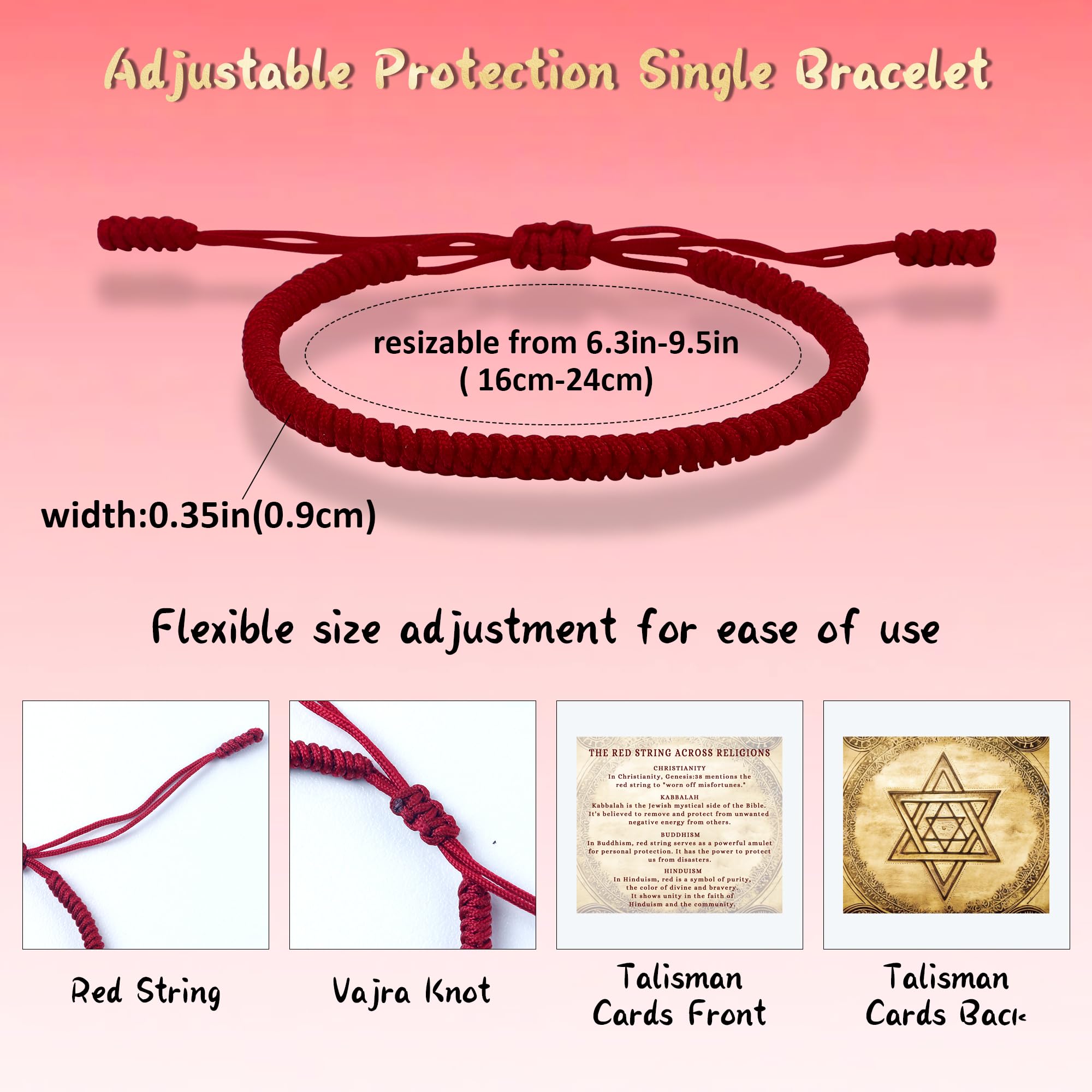 Adjustable Men Christian Bracelets: Men bracelet tibetan features an adjustable design, allowing for a perfect fit on any wrist. Slip knot closure, adjustable size from 6.3'' to 9.5'', suitable for lovers, friends and family. Women bracelet red is suitable for both adults and teens, ensuring versatility and convenience for every wearer.