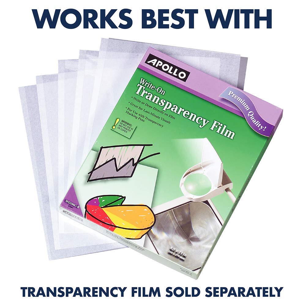 Apollo Horizon 2 Overhead Projector can brighten up your presentation. The closed head keeps dust and dirt from the double fresnel lens, which assures edge-to-edge sharpness and brightness. Has a 2000 lumen light output and 10 x 10 stage glass surface area. A built-in high-efficiency cooling system prevents overheating. Plus, the high/low lamp controls help extend the life of the projector. Weighing just 12 lbs. and with 2 carry grip handles, the projector can be easily moved from classroom to classroom. Store it away when not in use to take up less space. Comes with 2 year limited warranty. Includes lamp changer, locking Kensington Security Slot for theft prevention and thermal shutoff switch for safety. Create a dynamic presentation by using transparency sheets. For best results use Apollo Transparency Film, sold separately.