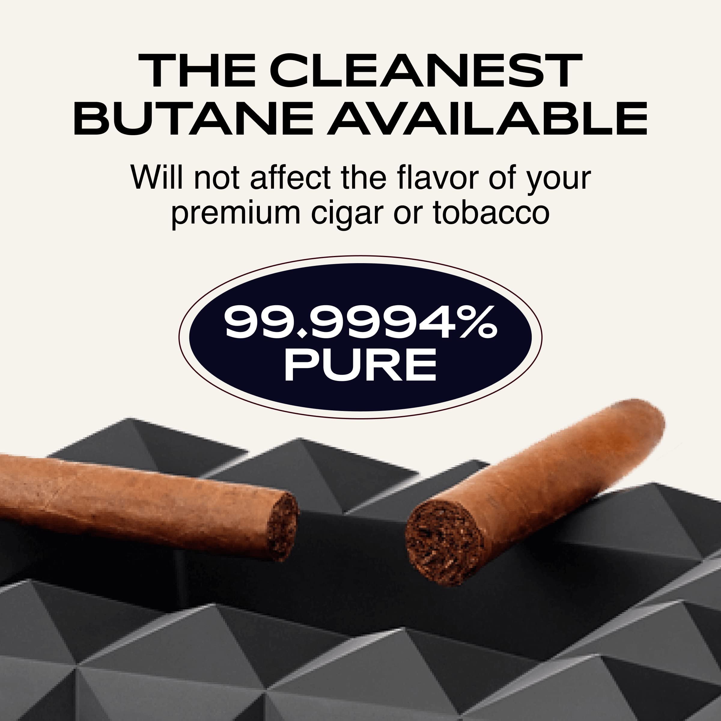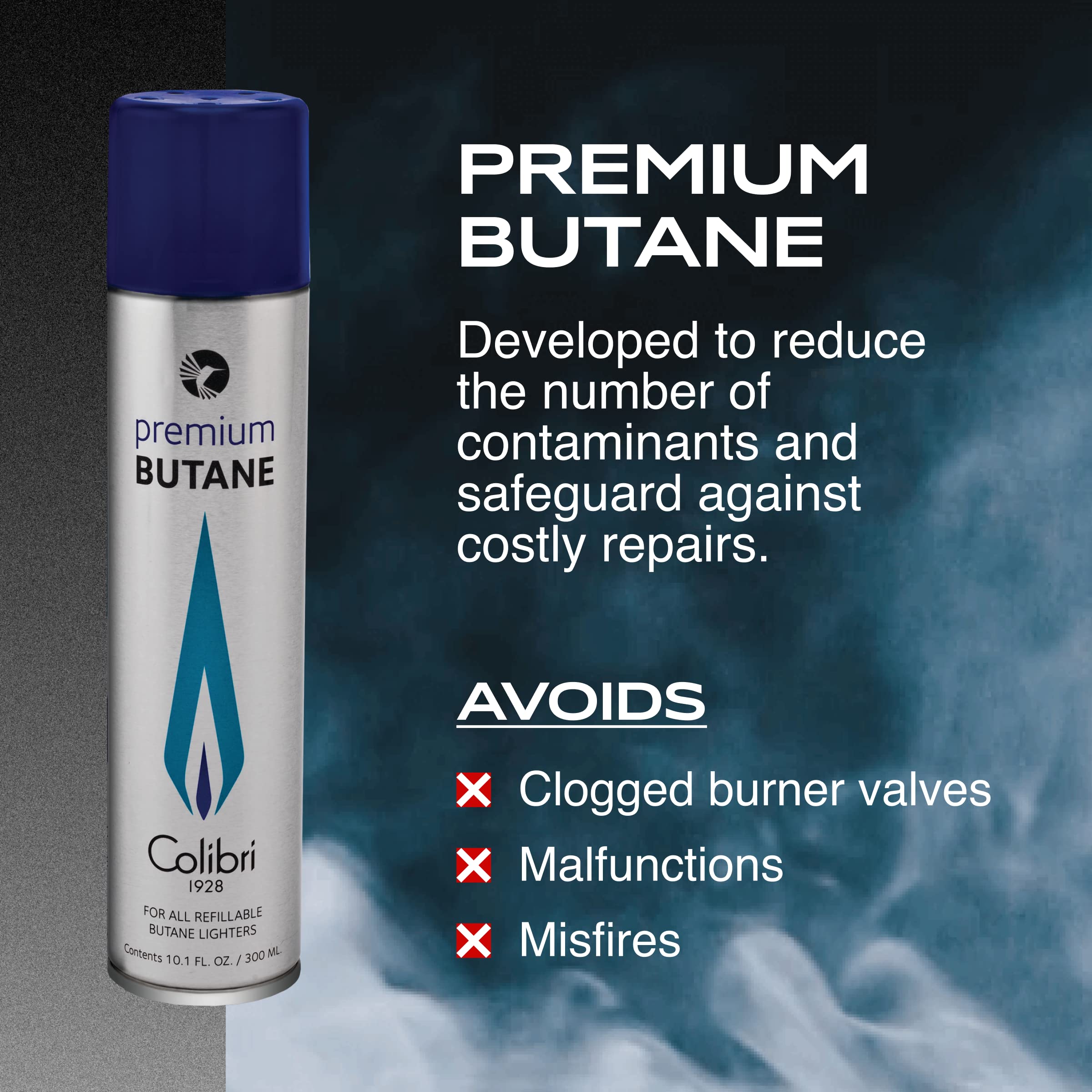 PREMIUM BUTANE GAS: Colibri butane is the cleanest available at 99.9994% purity. Produced to the exacting standards required by high-performance jet-flame lighters, resulting in fuel so pure it does not require repeated filtering, like other brands.