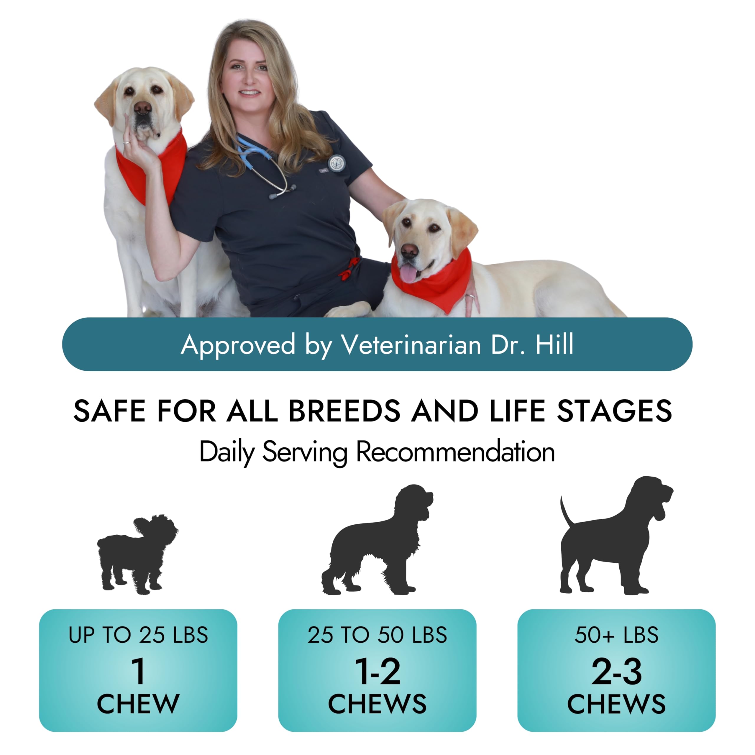 PORTABLE DOG CHEWS FOR ON-THE-GO RELIEF – Pet Vet Multi Soft Chews are the perfect solution for pet owners on the go. These easy-to-administer chews are portable and convenient, making them ideal for travel or as part of your dog's daily dog products routine. Whether you need a quick boost of immune support, glucosamine for joint health, or a supplement for dog skin and coat health, these chews—crafted by a woman-owned small business—deliver the essential nutrients to keep your dog thriving.