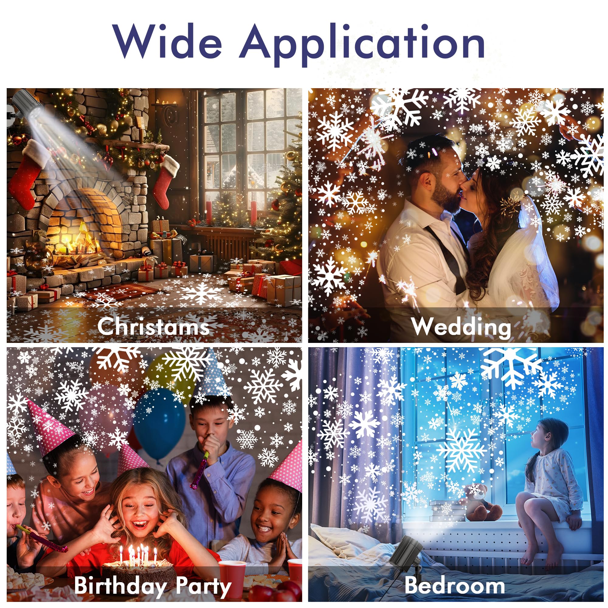 Multi-Scene Snowflake Magic: This Christmas snowflake projector can create enchanting snowfall effects for Christmas, Thanksgiving, New Year; Bring you and your family, friends into the magical snowflake space and fully enjoy the joy of the festival; A great way to light up your house for the holidays without having to risk getting on the roof