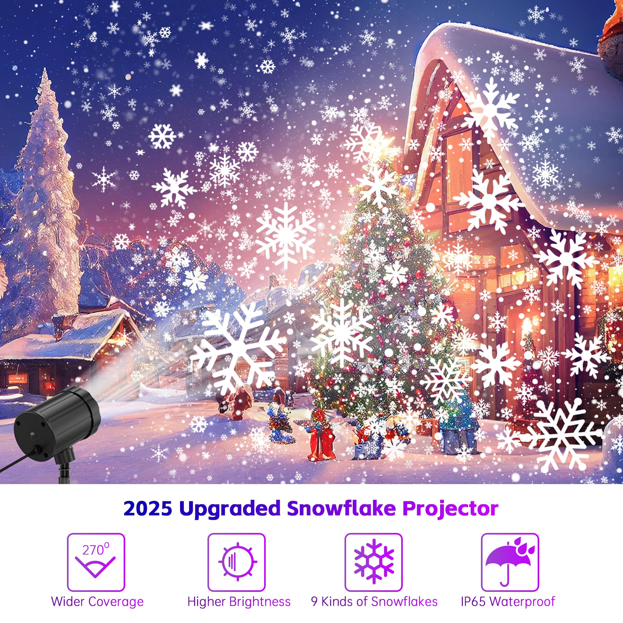 Built to Last in All Weather: This Christmas projector features a sturdy plastic casing, its waterproof level reaches IP65, and is equipped with an IP44 waterproof plug, ensuring that this LED snowflake projector can function properly even in rainy or snowy conditions; It is the ultimate choice for outdoor Christmas decorations
