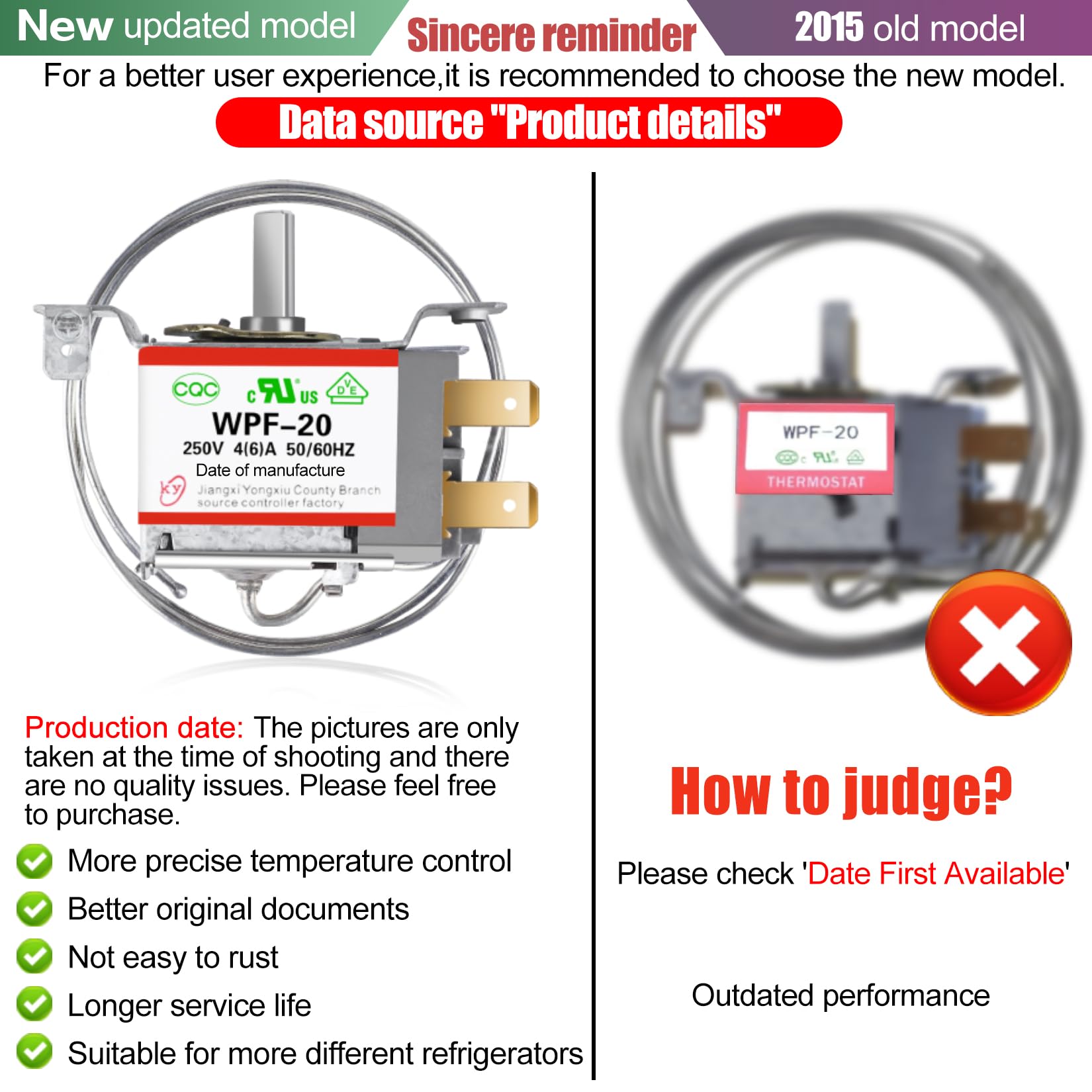 >>Thermostat wpf20 Package content: A mini fridge thermostat wpf20; temperature probe length: 27.5 inch(70cm); 250V 4(6)A 50/60NZ; Universal 2 pin