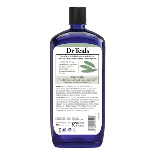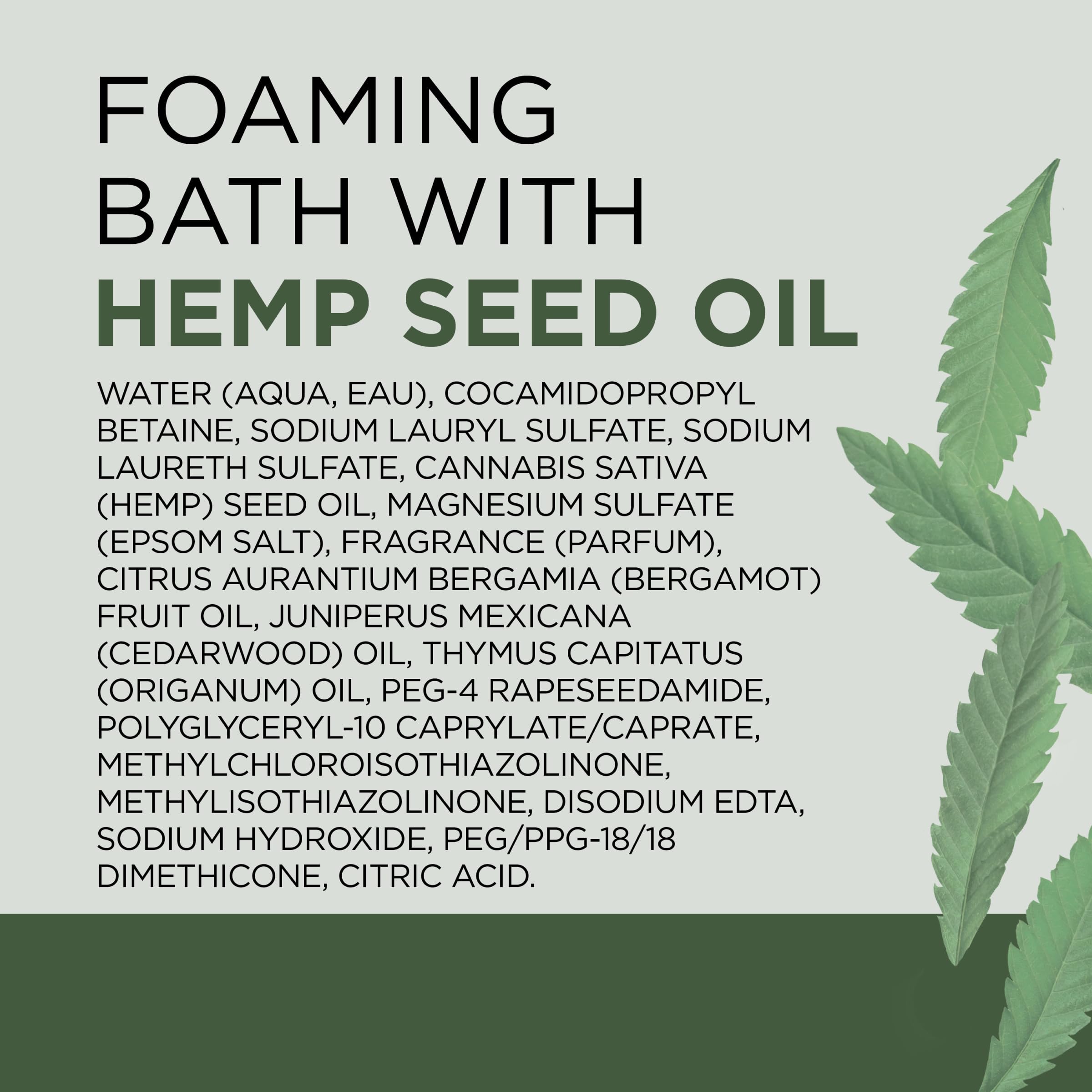 Stress-relief has never smelled so good with Dr Teal’s Cannabis Sativa Hemp Seed Oil Foaming Bath with Pure Epsom Salt. This powerful formula of essential oils is designed to moisturize, gently cleanse, and de-stress your body and mind entirely. Experience a fully rejuvenating experience your body and mind will thank you for. Our signature Pure Epsom Salt (Magnesium Sulfate) ingredient helps refresh your skin's appearance while you enjoy your bath. Dr Teal’s Foaming Baths are paraben-free, phthalate-free, and cruelty-free.