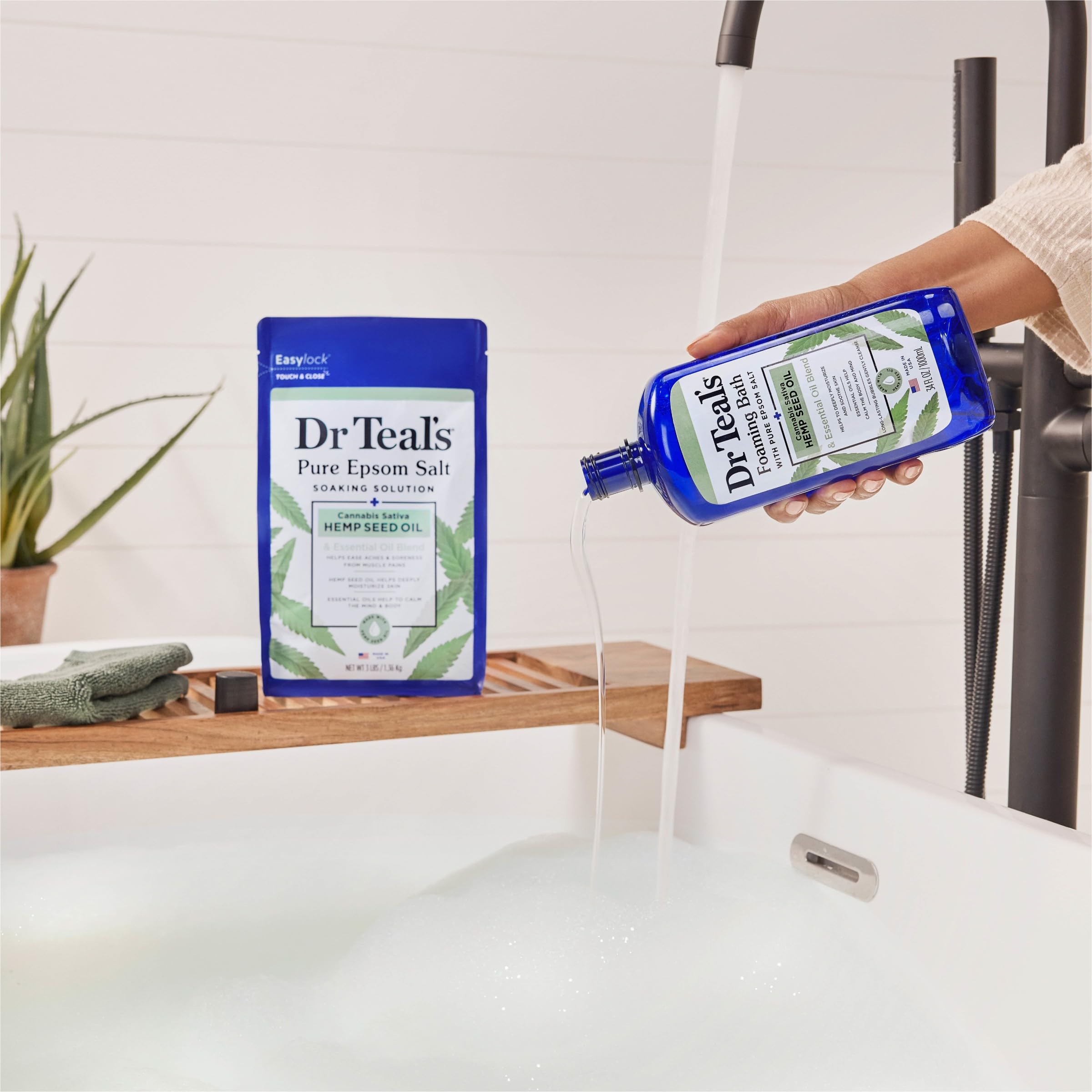 SELF-CARE RITUAL: Dr Teal’s Cannabis Sativa Hemp Seed Oil Epsom Salt Solution and Foaming Bath are great duo to add to your self-care routine