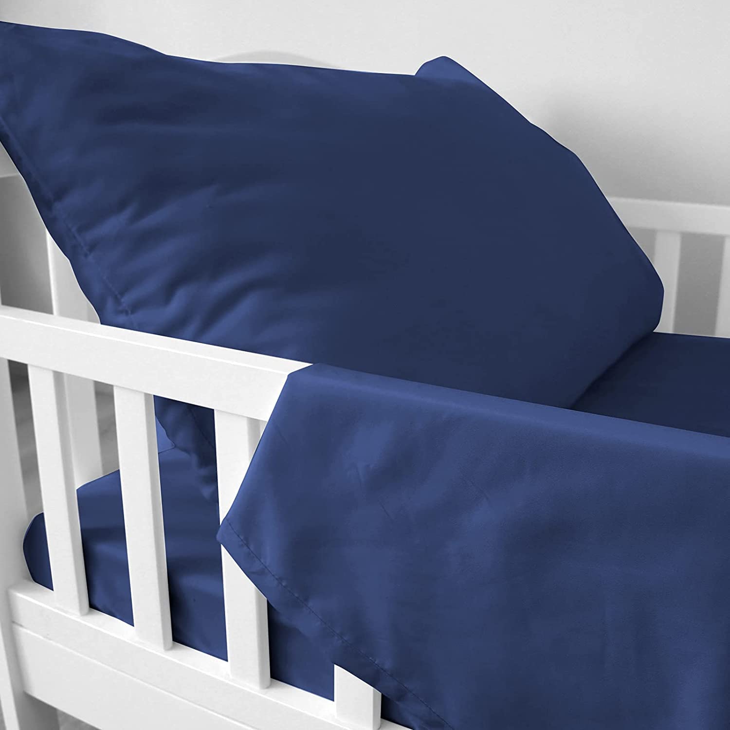 3 Piece Toddler Sheet Set: 1 Fitted Sheet (52’’ X 28’’ X 8’’), 1 Flat Sheet(45’’ x 60’’) and 1 Pillowcase(20’’ x 30’’). Our toddler sheet set fits toddler bed or standard crib perfectly. Encased with elastic band around 4 edges, does not slip away when baby’s sleeping over it. Super Soft and cozy texture offers toddlers and babies a good sleep and daily rest.