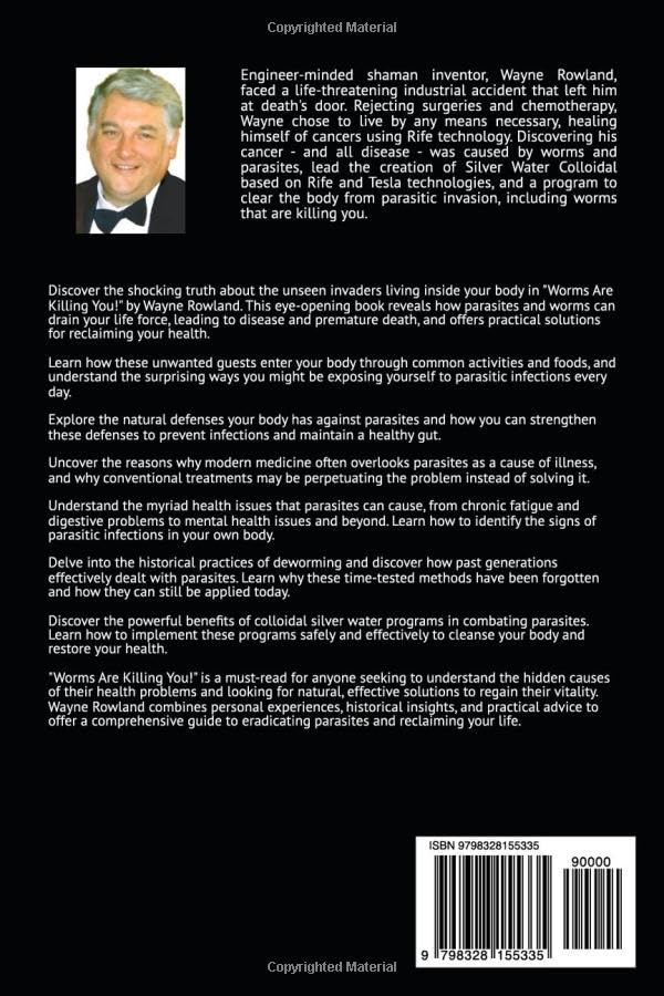 Discover the shocking truth about the unseen invaders living inside your body in "Worms Are Killing You!" by Wayne Rowland. This eye-opening book reveals how parasites and worms can drain your life force, leading to disease and premature death, and offers practical solutions for reclaiming your health. Learn how these worms and other parasites enter your body through common activities and foods and understand the surprising ways you might be exposing yourself to parasitic infections every day. Explore the natural defenses your body has against parasites and how you can strengthen these defenses to prevent infections and maintain a healthy gut. Uncover why modern medicine often overlooks parasites as a cause of illness and why conventional treatments may perpetuate the problem instead of solving it. Understand the myriad health issues that parasites can cause, from chronic fatigue and digestive problems to mental health issues and beyond. Learn how to identify the signs of parasitic infections in your own body. Delve into the historical deworming practices and discover how past generations effectively dealt with parasites. Learn why these time-tested methods have been forgotten and how they can still be applied today. Discover the powerful benefits of colloidal silver water programs in combating parasites. Learn how to implement these programs safely and effectively to cleanse your body and restore your health. "Worms Are Killing You!" is a must-read for anyone seeking to understand the hidden causes of their health problems and find natural, effective solutions to regain their vitality. Wayne Rowland combines personal experiences, historical insights, and practical advice to offer a comprehensive guide to eradicating parasites and reclaiming life.