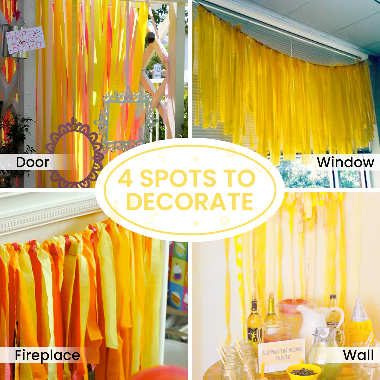 Perfect for Multiple Occasions: Whether it's a wedding decorations, graduation party, birthday, summer theme party, bachelorette decorations, anniversary, engagement, these yellow crepe paper streamers are ideal and making your event more memorable