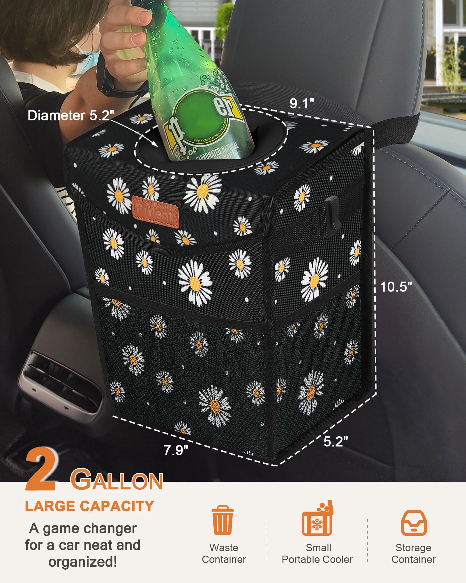 3-in-1 Multipurpose Container With 2 gallon Capacity:A game changer for a car neat and organized! It is not only a rubbish holder and car storage organizer, but a nice portable cooler bag for your car. Mesh pockets provide convenient storage places for things like tissues, extra trash bags, and cleaning wipes. The mesh pockets can hold anything you want to keep within arm’s reach in your car. Why not upgrade your driving experience today and invest in a Pritent Trash can for your car?