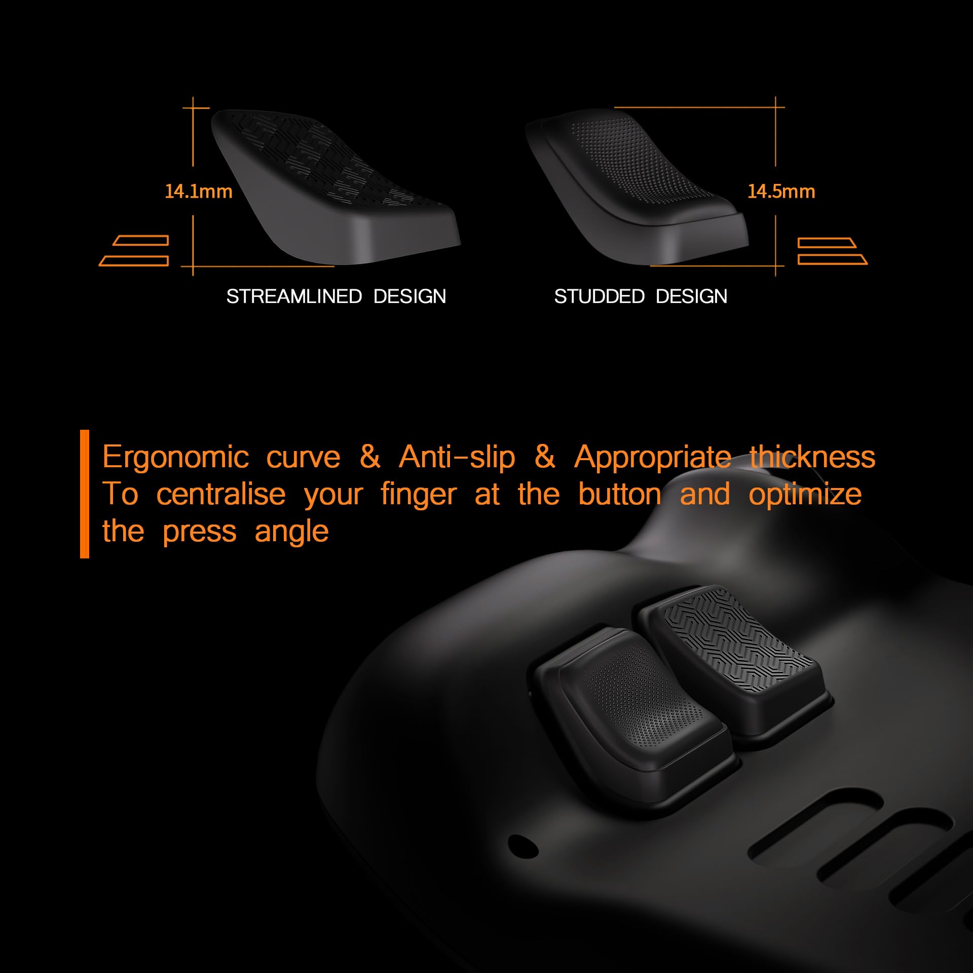 Made of soft rubber with a non-slip texture, the ergonomic arcuated design provides an extra tactile feel and improved grip. It enhances the feel of the back buttons while also providing a non-slip effect