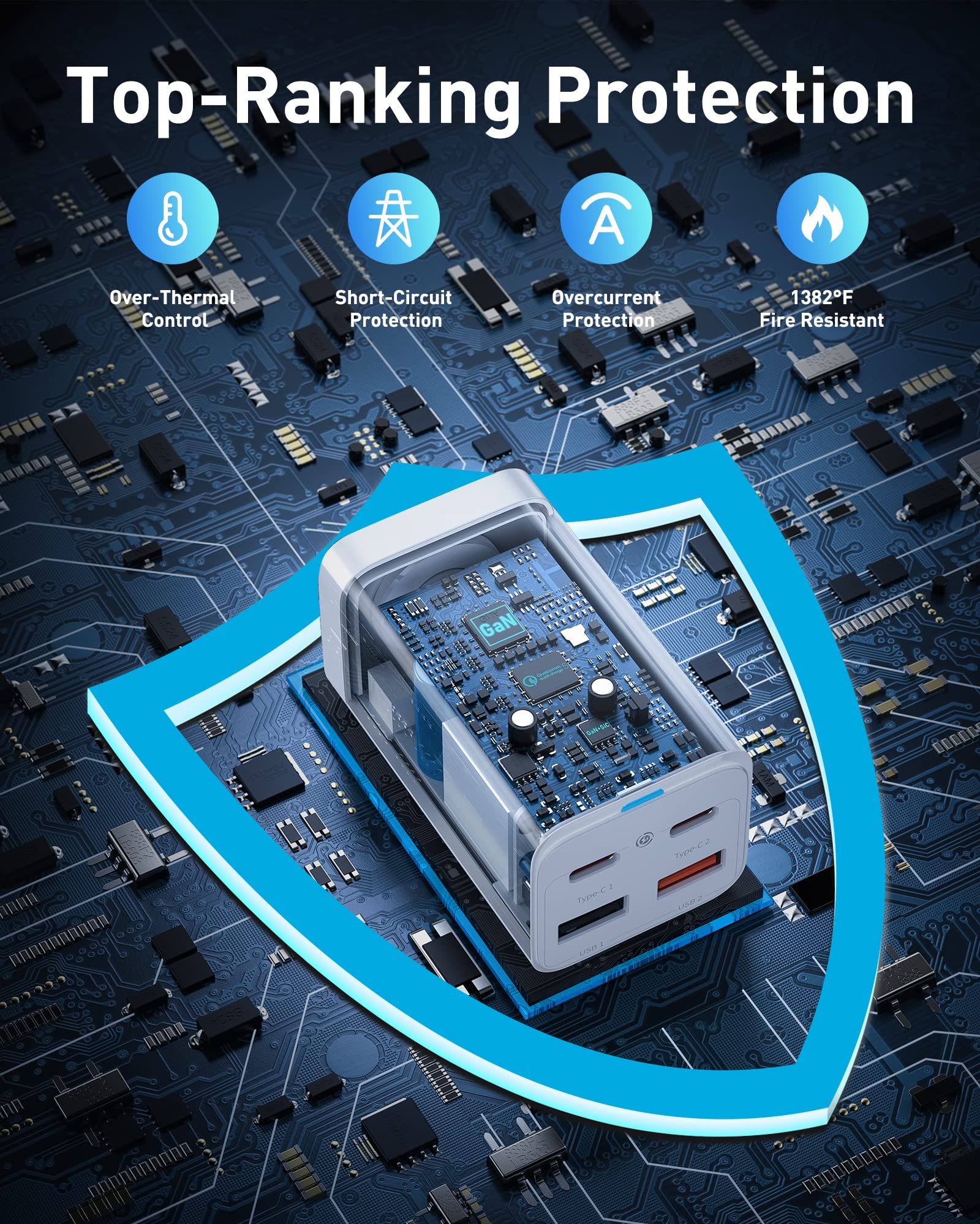 Smaller Size, More Power: This GaN 100W Desktop chargers are 10% smaller than the GaN2 products sacrificing no power and 60% smaller than the original 65W USB-C charger, taking up less space and keep your desk tidy while charging your phone, tablet, laptop.