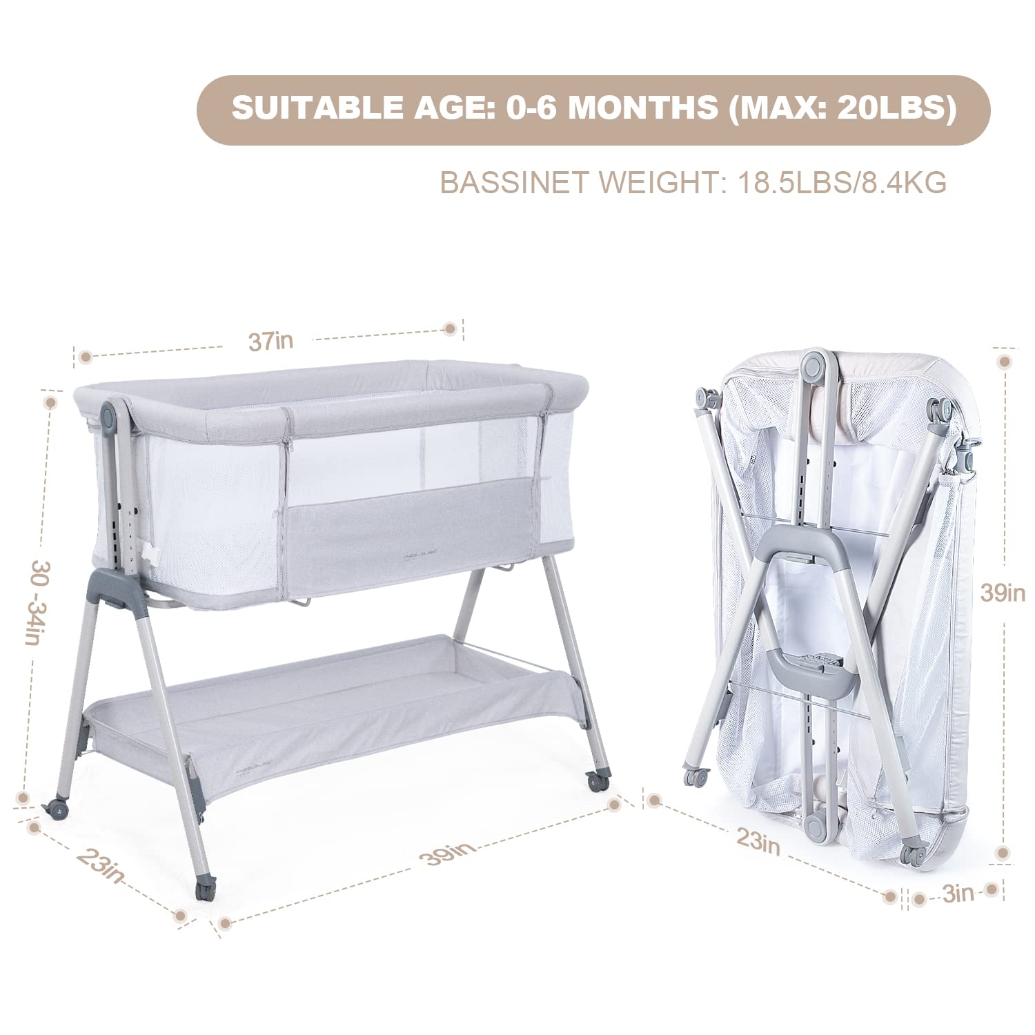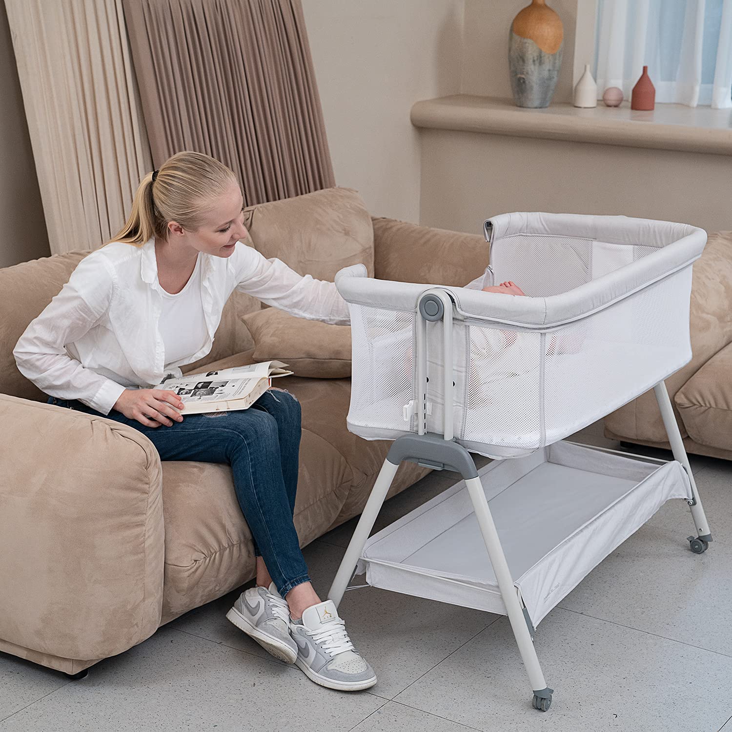 Dual Use: Features a modern design and versatility, allows using as a standalone bassinet or a bedside sleeper. Simply use two fastening straps attached to the mom's bed without any gaps. Easy set-up and take-down within seconds, tool-free assembly.