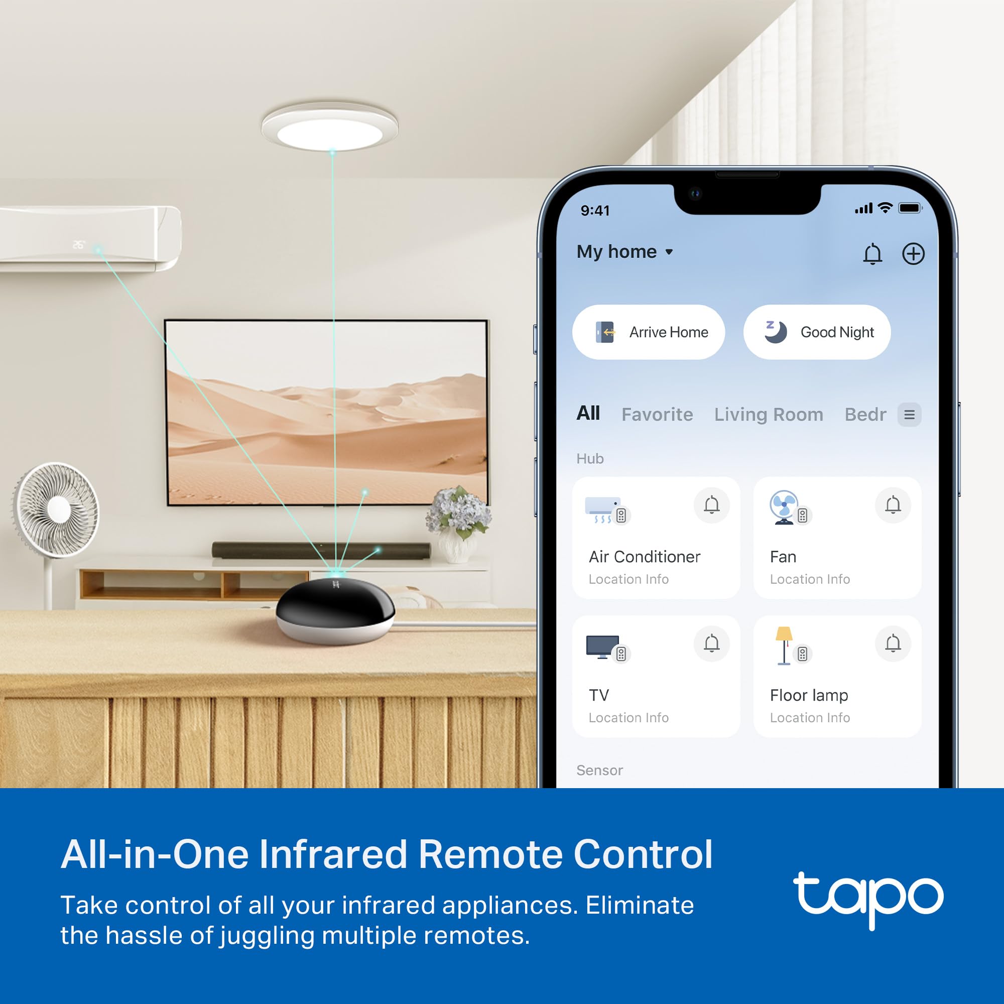 Tapo H110 centralizes your smart home ecosystem by combining a powerful Matter-certified hub, an integrated chime, and a full-function universal IR remote into one compact command center. Designed to unify Tapo smart devices and traditional home appliances, the H110 enables seamless control across sensors, cameras, smart plugs, and 8,000+ brands across infrared-controlled electronics including TVs, AC units, fans, and entertainment systems. IR learning further extends compatibility, smart-enabling legacy products with voice commands, scheduled automations, and multi-room control. As the automation backbone for Tapo sensors, the hub delivers rapid, low-latency alerts for open-close events, motion detection, temperature changes, and more. Its built-in chime provides customizable audio cues for notifications, smart alarms, and doorbells — no third-party speaker required. Local processing ensures core automations continue even during internet outages, maintaining operational continuity at scale. With support for Amazon Alexa, Google Assistant, and Apple Home via Matter, H110 becomes the interoperability layer that keeps your ecosystem future-proof. The Tapo app (iOS 12+ and Android 6.0+) streamlines device onboarding, IR setup, and automation building with simplicity. Engineered for durability in everyday environments, H110 operates between 32°F–104°F (0°C–40°C) and up to 90% humidity (non-condensing). The package includes the Tapo H110 Hub, USB-C power cable, and Quick Start Guide. A 5V⎓2A USB power adapter is required and sold separately. FCC-certified for safety and performance. Legal Disclaimers ◇A Matter Controller is required for setup (e.g., HomePod, Nest Hub, Echo, SmartThings Station). See Part 3: General Questions for TP-Link Matter-enabled Devices for more information. §The Tapo H110 requires a 5V⎓2A USB power adapter for operation. Not included and sold separately.