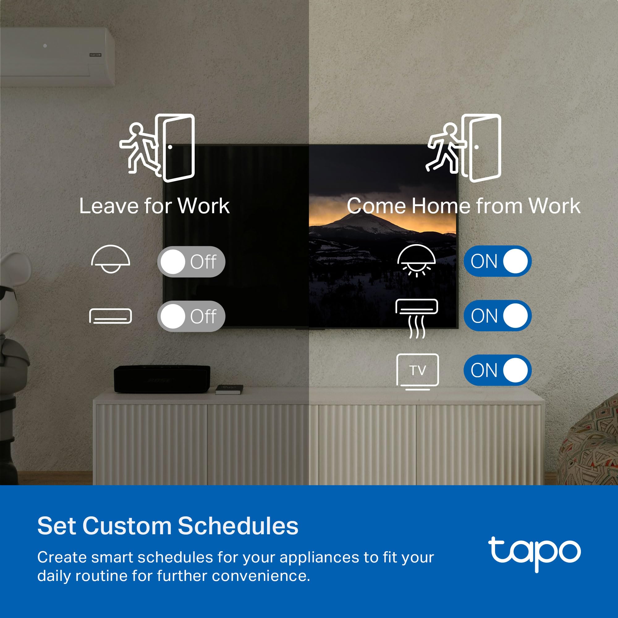 FULL REMOTE ACCESS IN THE TAPO APP: Use the Tapo app on iOS or Android to access devices wherever you are. Turn off forgotten appliances, adjust AC settings before arriving home and keep energy use under control.