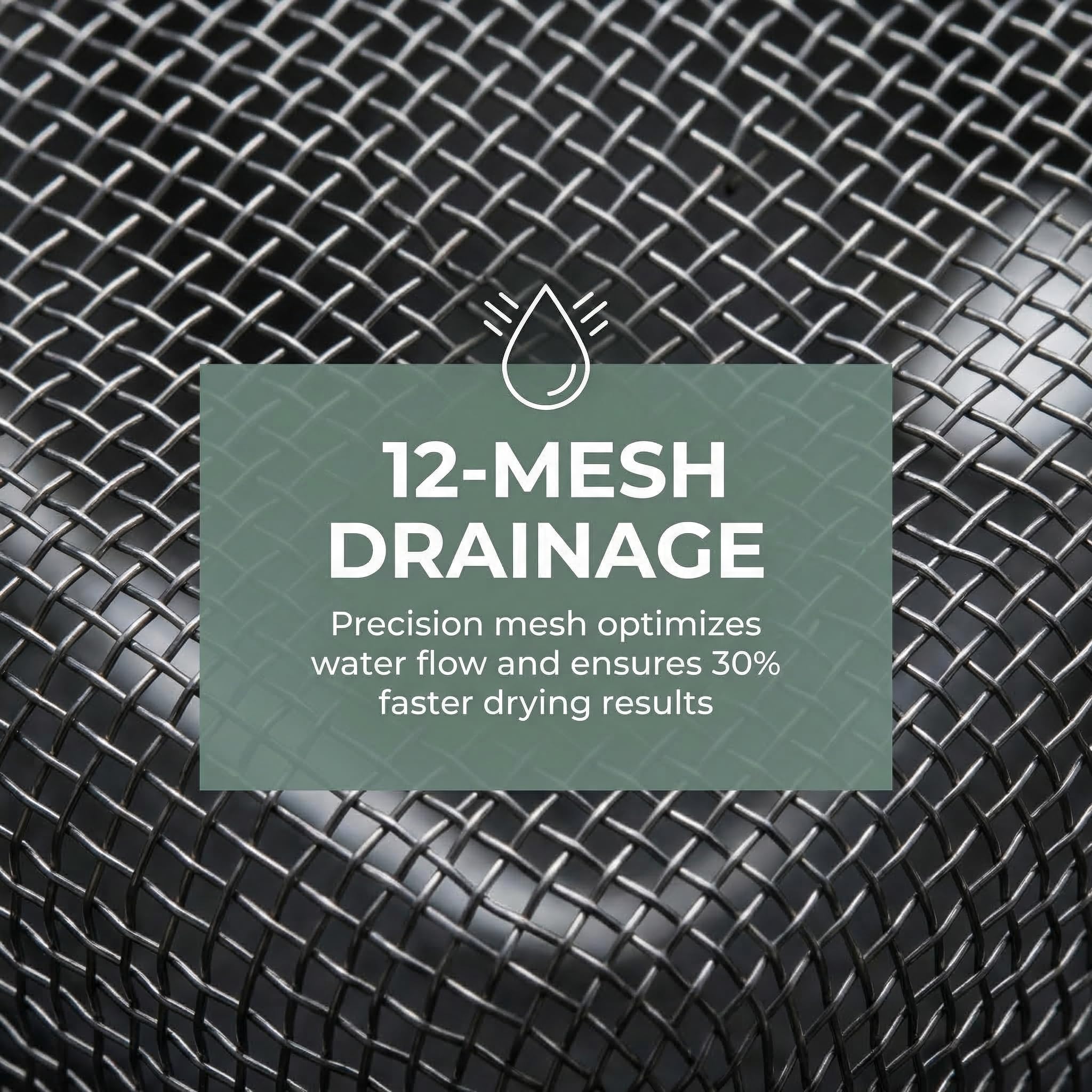 Precision 12-Mesh Holes Optimize Water Flow (30% faster drainage) and Hot Air Circulation - Reducing water spots by 60% compared to standard plastic baskets