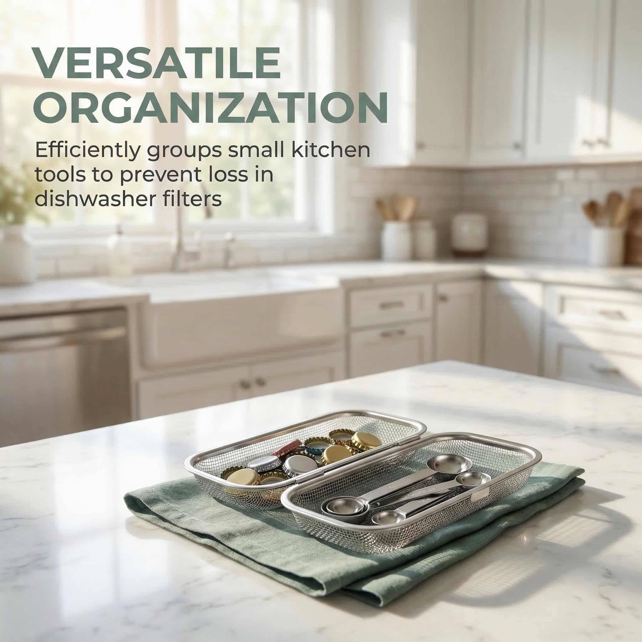 Multi-Functional Organizer for Small Washable Accessories - Beyond utensils, this versatile basket efficiently organizes small kitchen essentials such as bottle caps, measuring spoons, small silicone spatulas, and other tiny washable tools. It keeps small items grouped together, preventing them from getting lost in the dishwasher’s filter or spray arms