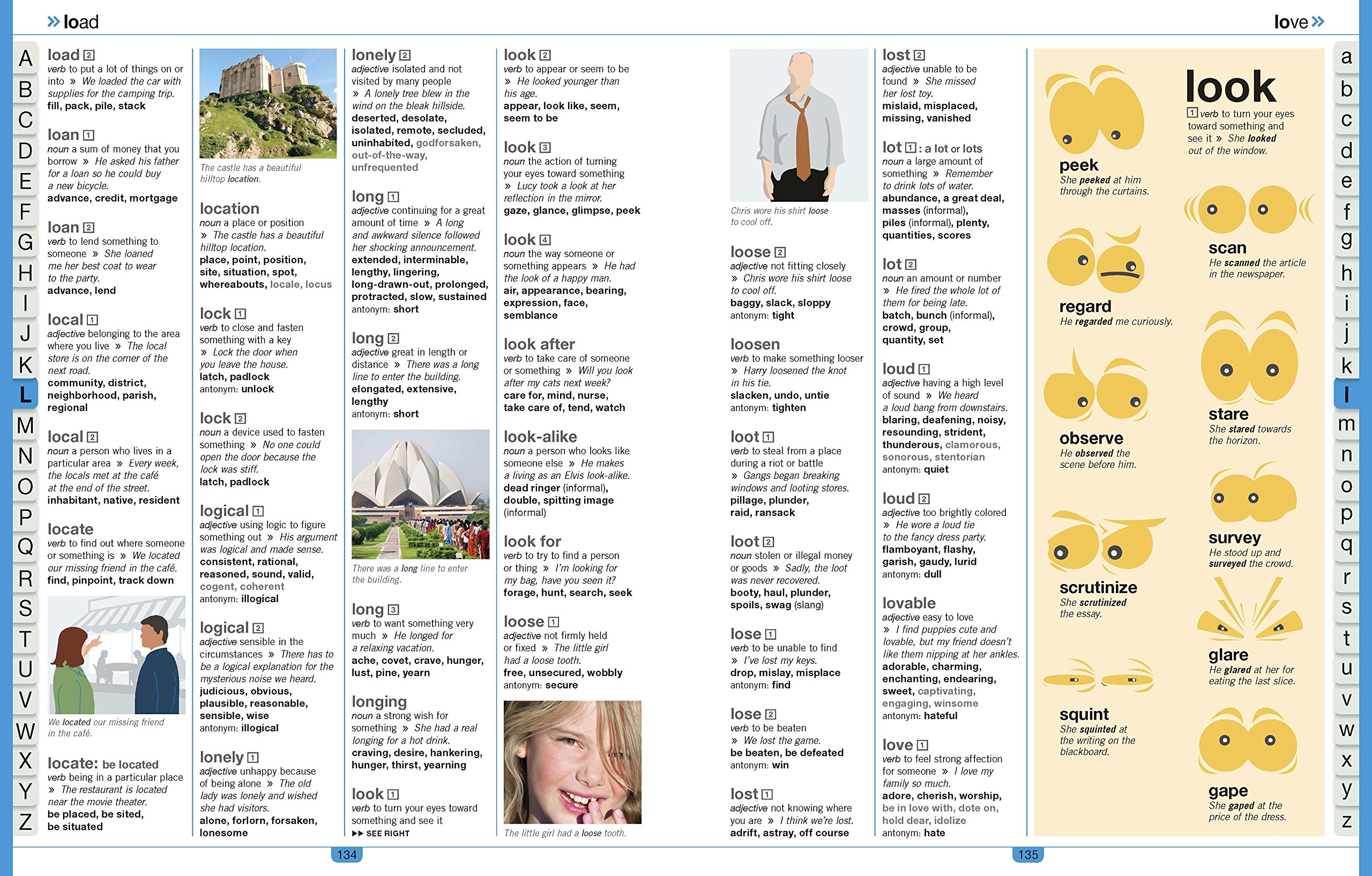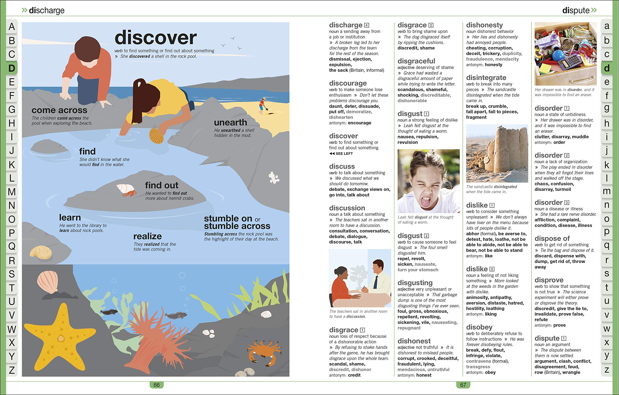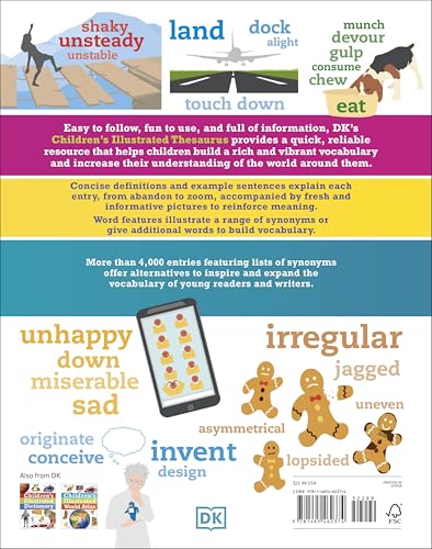 Expand and explore your vocabulary. Discover a whole new vocabulary and never be lost for words again, with this comprehensive and detailed illustrated children’s thesaurus, with synonyms and antonyms for more than four thousand main entries. This beautifully illustrated thesaurus for kids age 9 and older is packed with: • A comprehensive, illustrated thesaurus created specifically for young readers and writers • Authoritative content from Collins is given the DK treatment to make the pages lively and the words meaningful for children • Fun and fresh illustrated "word features" to explore and expand on vocabulary This colorful and insightful thesaurus contains more than four thousand entries, where each entry is supported by a definition and example sentence to help boost a child’s confidence in using and choosing words. An imaginative mix of photography and illustration gives the book great visual appeal and is the perfect book for children who enjoy words; or who need a little extra help or encouragement with their English vocabulary. Each entry provides information about each headword: the word type (e.g. noun); definition; example sentence; list of synonyms; further (more advanced) synonyms and antonyms. It also includes synonyms from Australia, New Zealand, Scotland, South Africa and the U.S. The Children’s Illustrated Thesaurus is not only a fun and vibrant educational tool for children, but is also perfect for educators looking for a learning tool to inspire vocabulary development. Expand your library collection and pair this exciting learning tool with DK’s ever-popular Children’s Illustrated Dictionary.