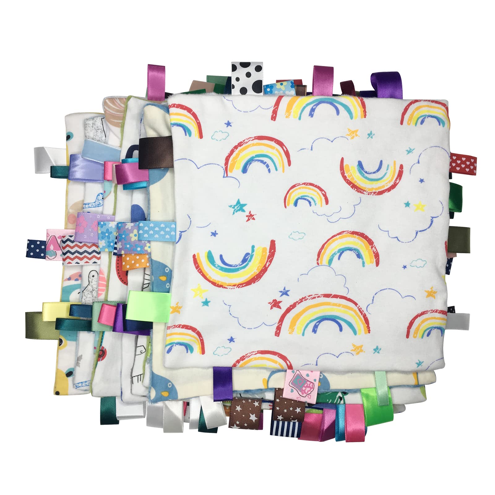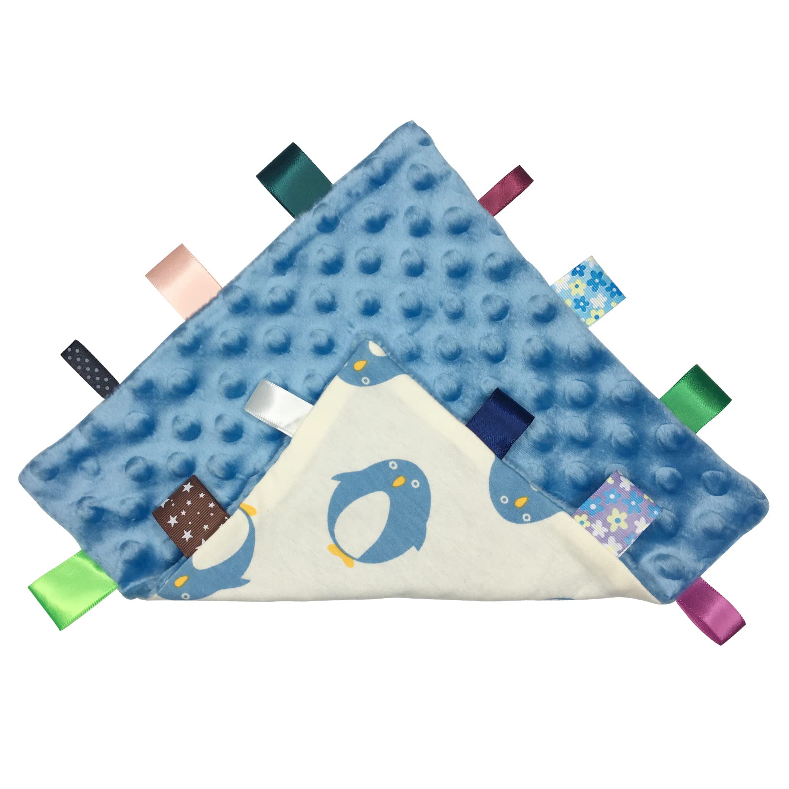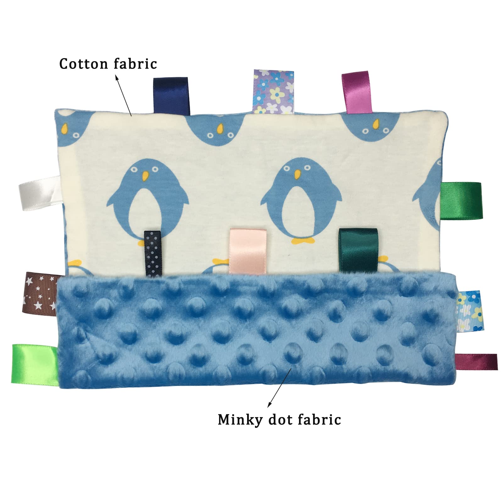 【Tags Blanket for Little One】 Colorful Tags, Irresistible satin ribbon tags around its border, the security blanket provides a tactile experience for curious little fingers.