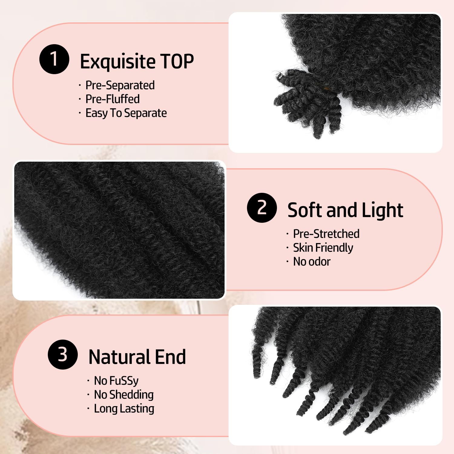 1. Advantages: Afro Twist Hair Made Of High-Quality Synthetic Fiber, The Hair Extensions Look Natural, Soft, Strong, Imitating Real Hair, Preventing Frizz, Tangling And Shedding, Bringing A Long-Lasting And Smooth Effect