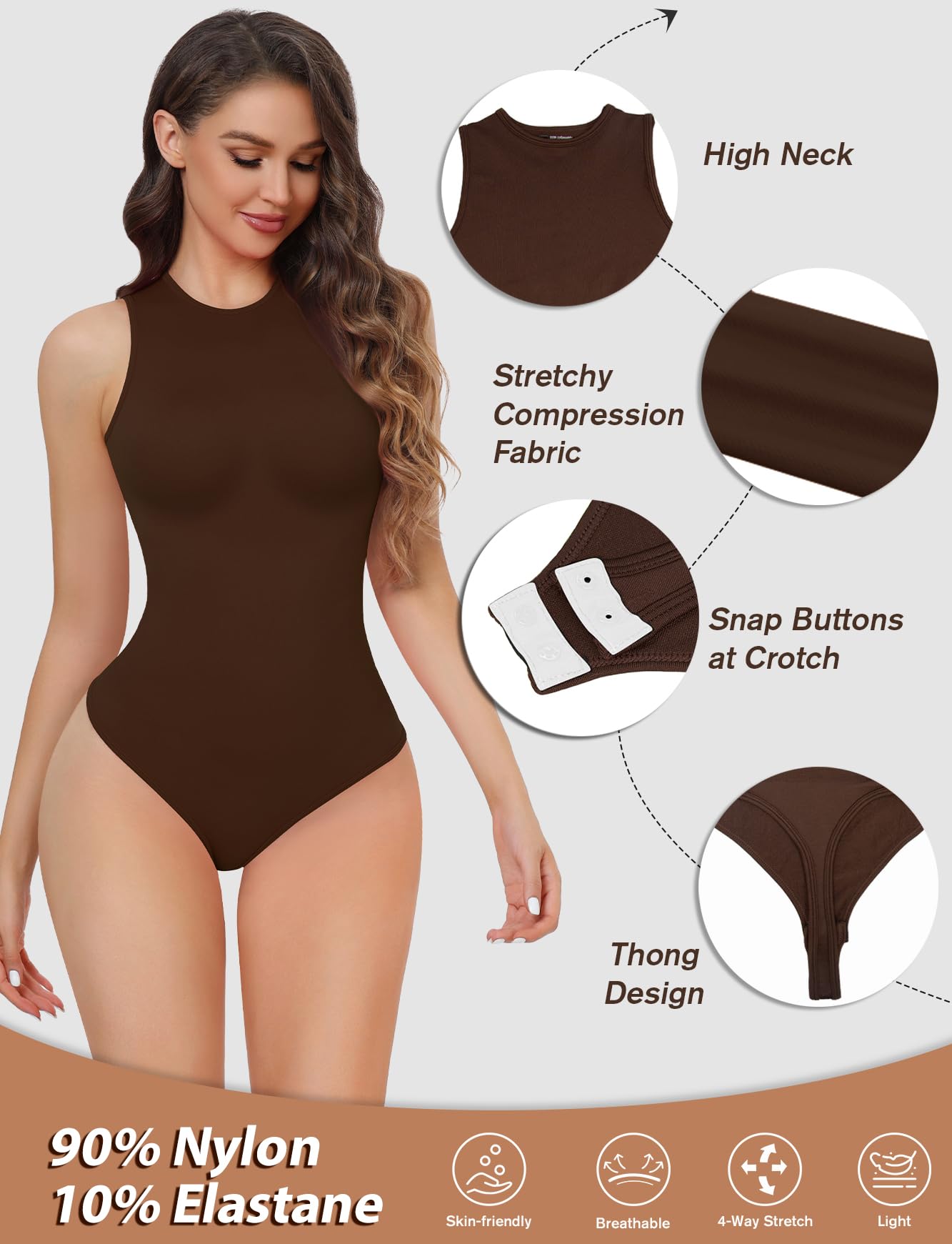 Design: Our bodysuits for women tummy control features high neck and thong cut. The high neckline provides coverage to the chest and back area, showcases a unique and sporty style. Additionally, thong cut helps to minimize visible panty lines, ensuring a smooth and seamless appearance under clothing. To top it all off, convenient snap closure at the crotch allowing for easy bathroom breaks without compromising on style.