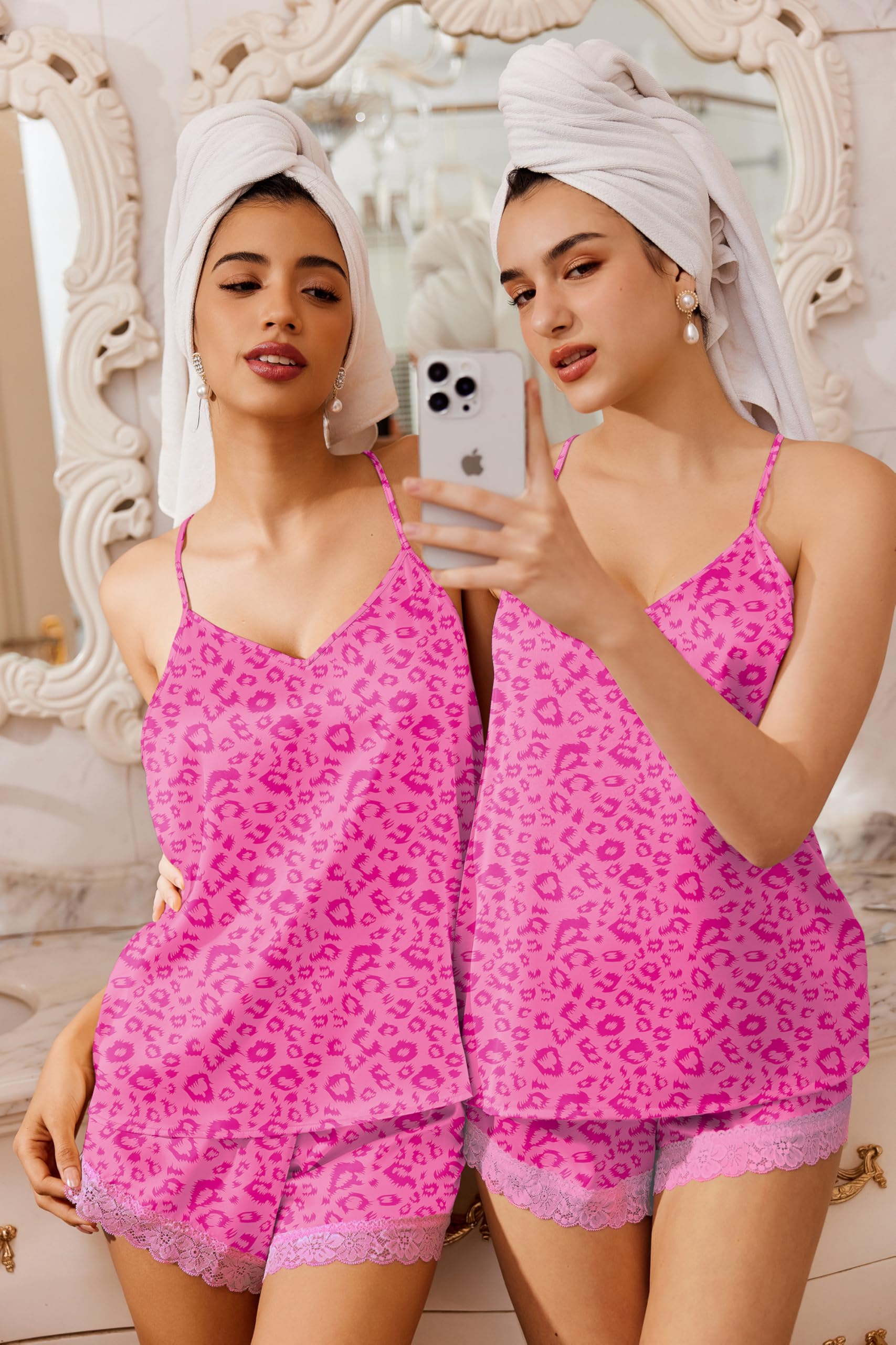 SOFT SATIN PAJAMA SET: The sexy pajama set for women is lightweight and loose-fit,very easy to put on and take off, make you cool and comfortable for summer days