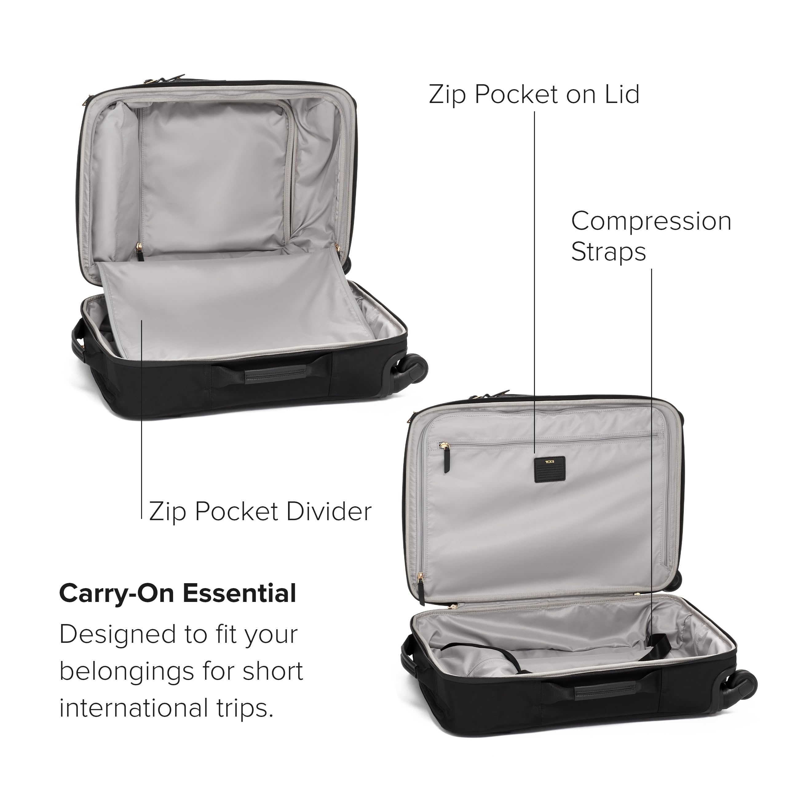 The Tumi Voyageur Leger International Carry-On has a split case zip entry and interior pockets to carry all your essentials.