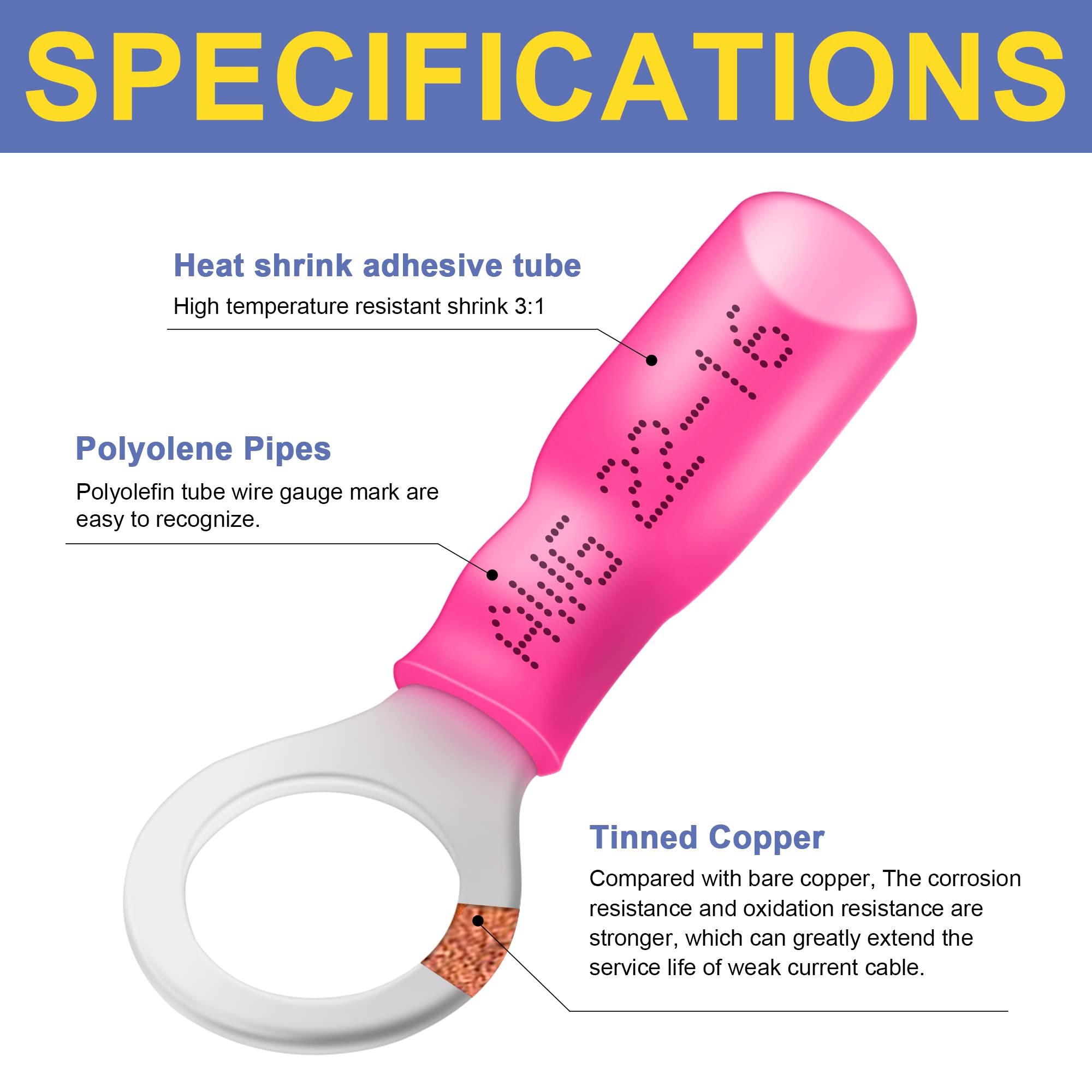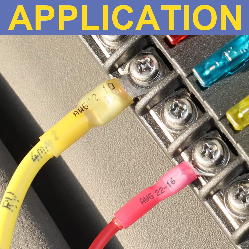 Flexible Application:The 100pcs heat shrink ring terminals work for wire gauge AWG 22-16 #10.For motorcycles,automobiles,Tractors,boats,etc