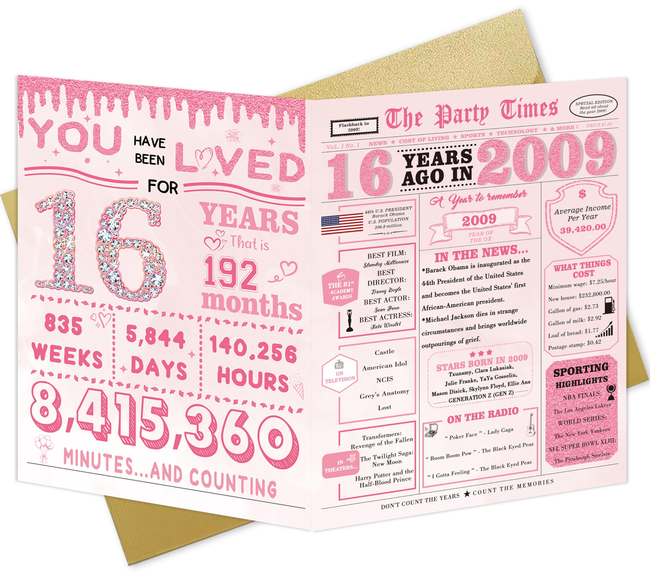 Sweet 16th Birthday Card: Celebrate your girl's Sweet 16 with a card that marks this special milestone and the years of love and memories. Make your girl's Sweet 16 birthday truly memorable with the "16 Years of Love" card. This card is designed to celebrate the significant milestone of becoming a teenager and to cherish the journey of her first 16 years.