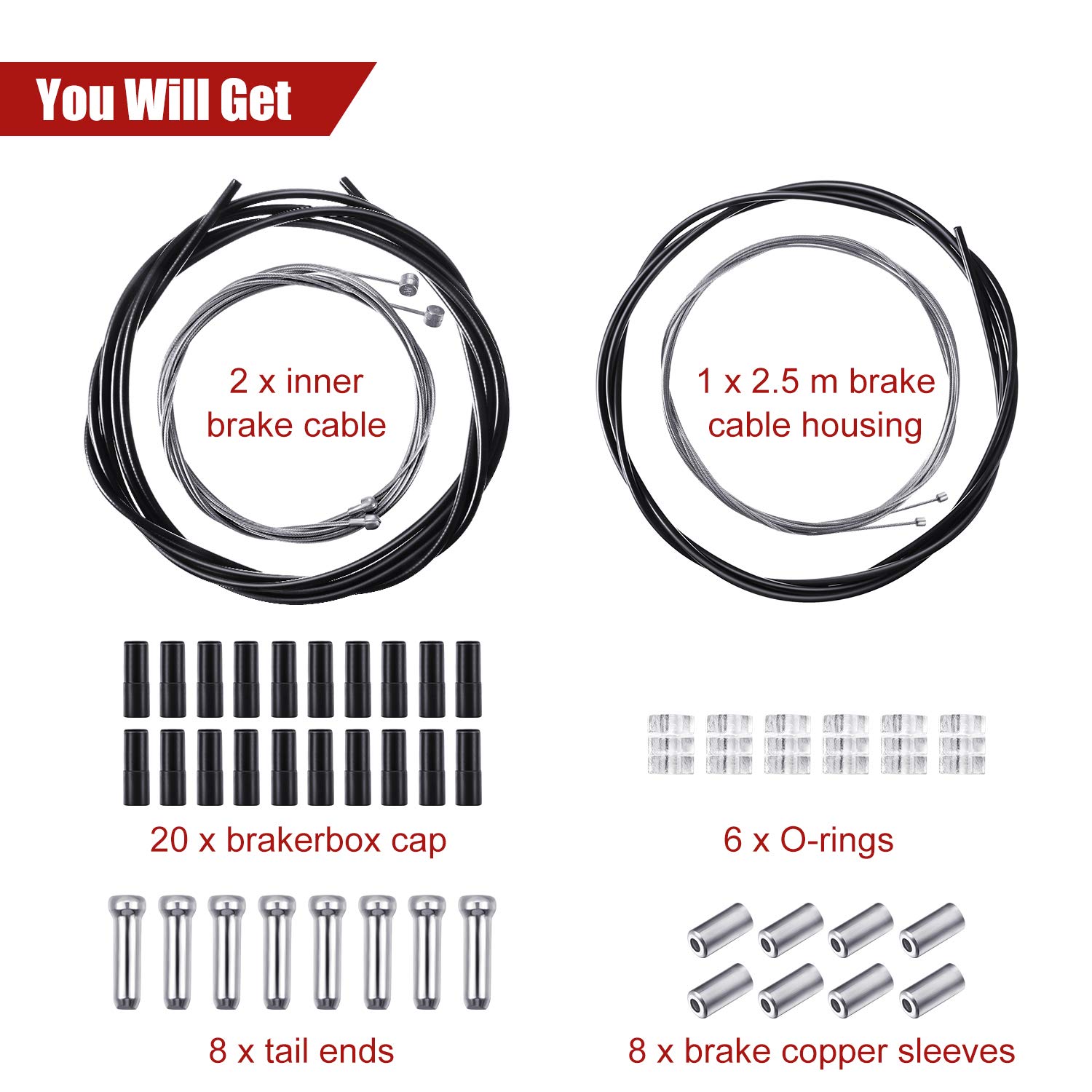 Ample quantity: you will receive 1 piece 2 m transmission cable shell (4 mm), 2 pieces inner variable speed cable, 1 piece 2.5 m brake wire outer tube (5 mm), 2 pieces inner brake cable, 6 pieces O rings, 8 pieces tail ends, 8 pieces brake copper sleeves, 21 pieces cable ferrules, large amount of quantity