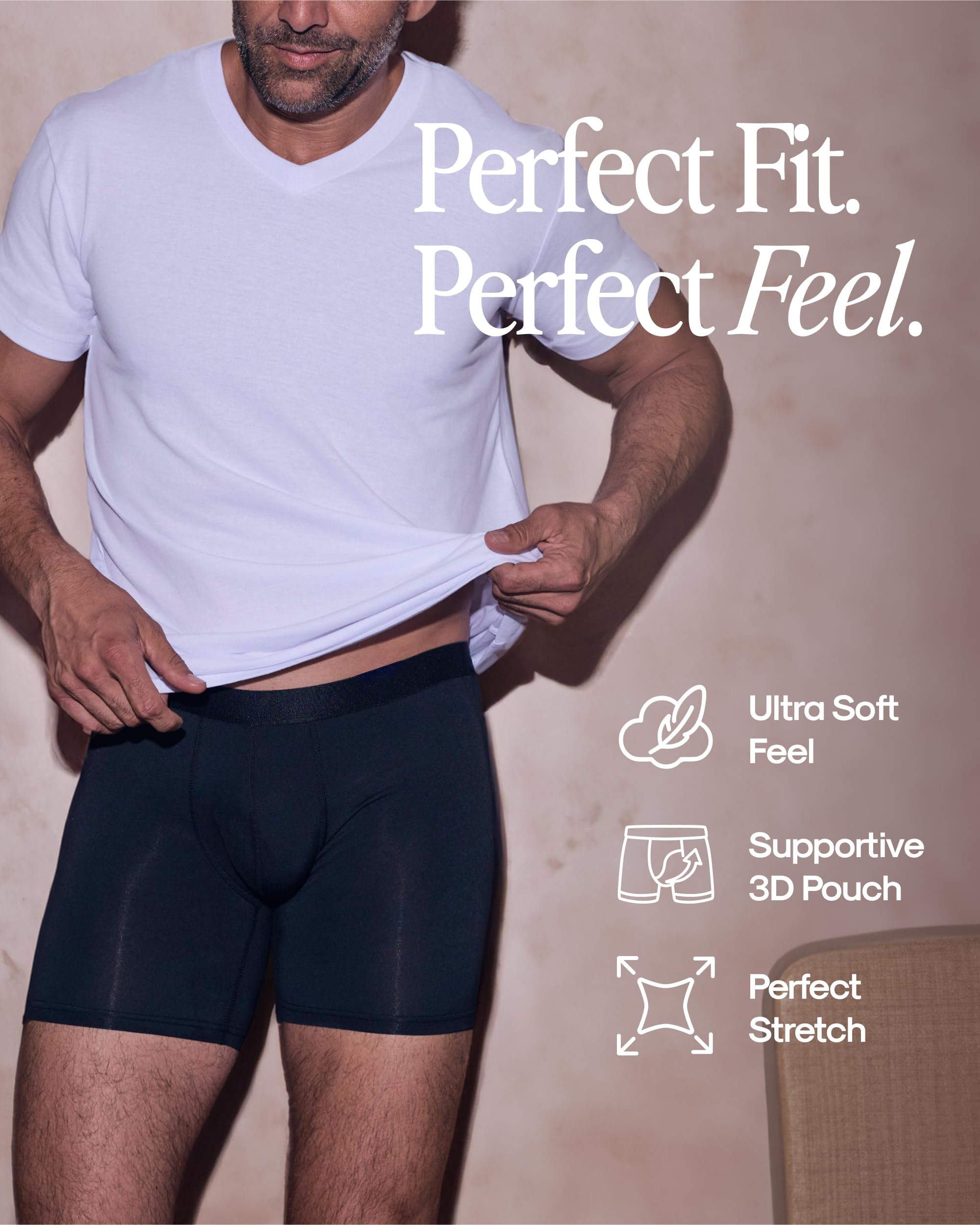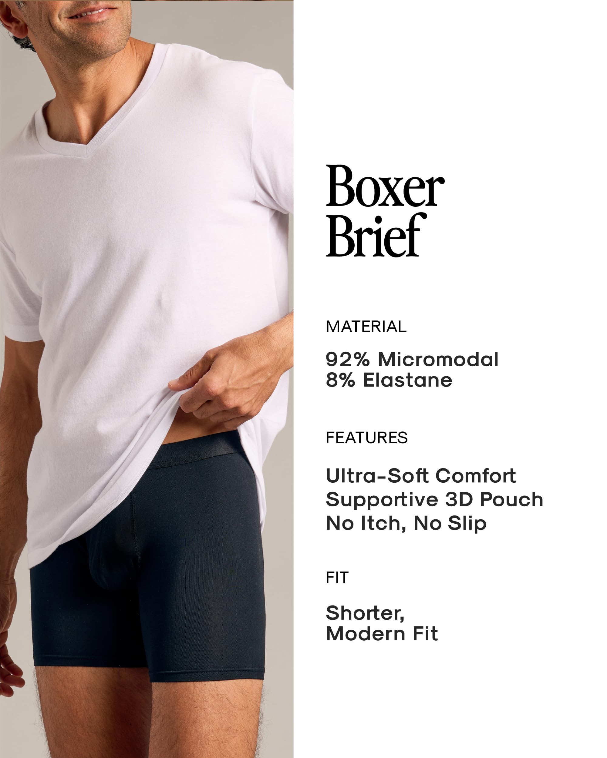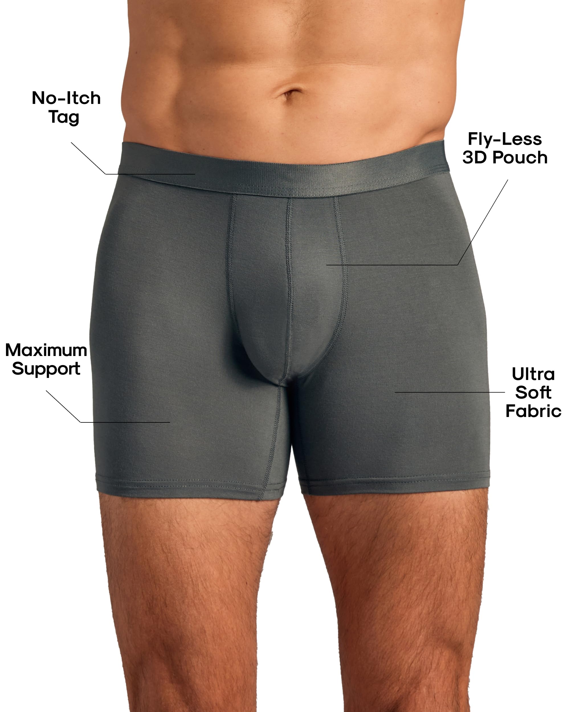 COMFORT FIT THAT STAYS PUT: Our mens underwear boxer briefs give cooling support with comfort thanks to a flyless 3D pouch and stay-put legsβideal mens underwear for all-day wear and workouts.