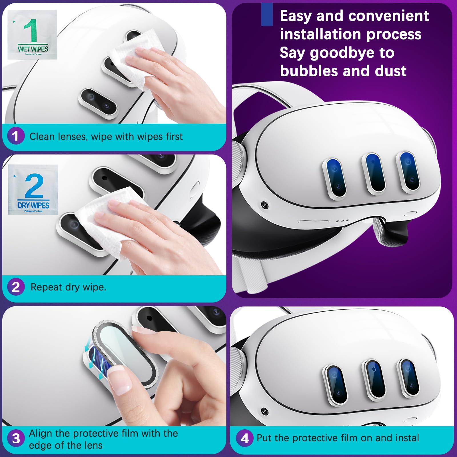 【Compatible with Meta Quest 3】Precise laser cut dimensions provide protection for the entire camera lens of the quest 3. The camera lens protector is compatible with the rim design and fits almost any protective case.