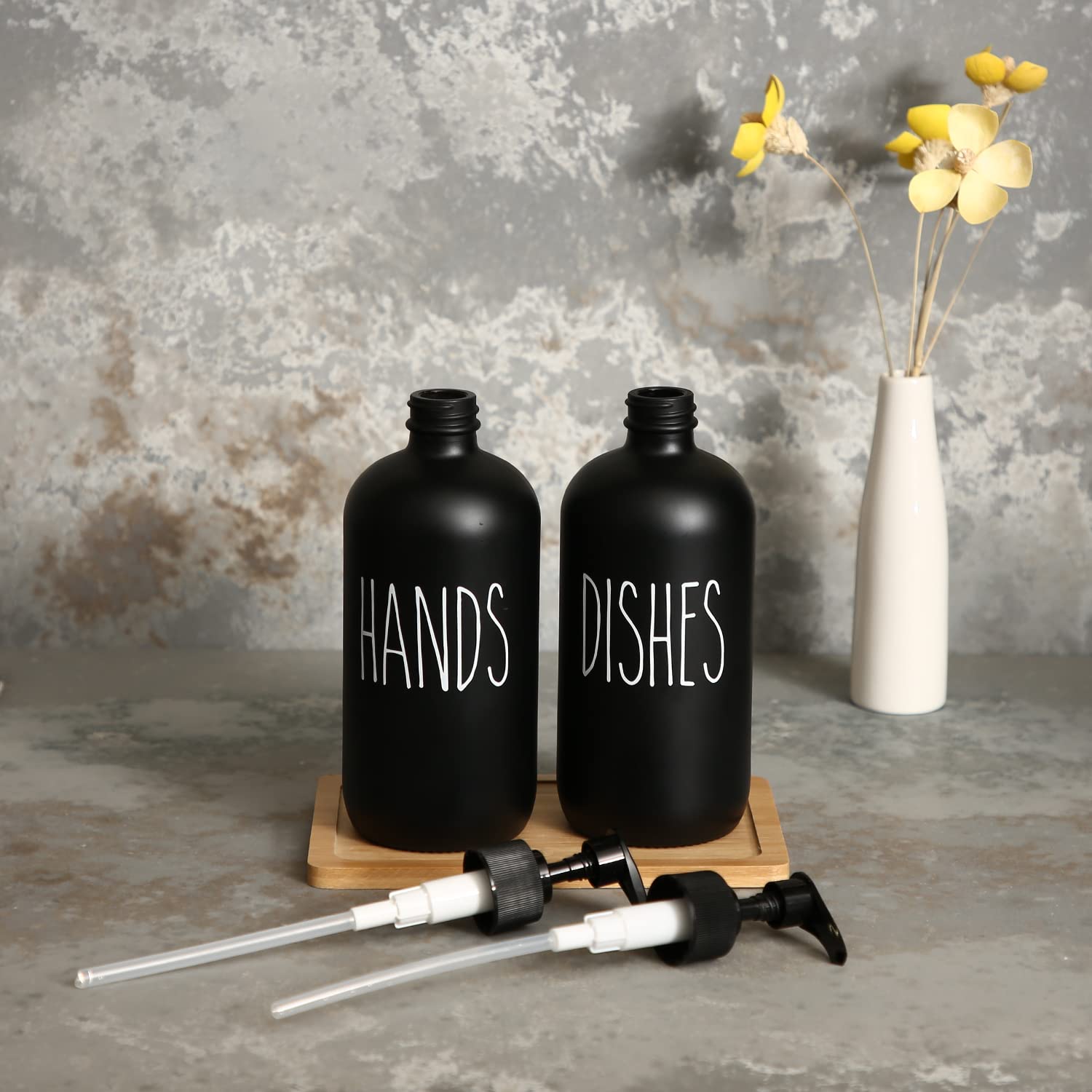 EXCEPTIONAL QUALITY - The kitchen soap dispenser and bathroom soap dispenser are made of glass, matched with black plastic pumps, will not rust, can be refilled, and is reliable.