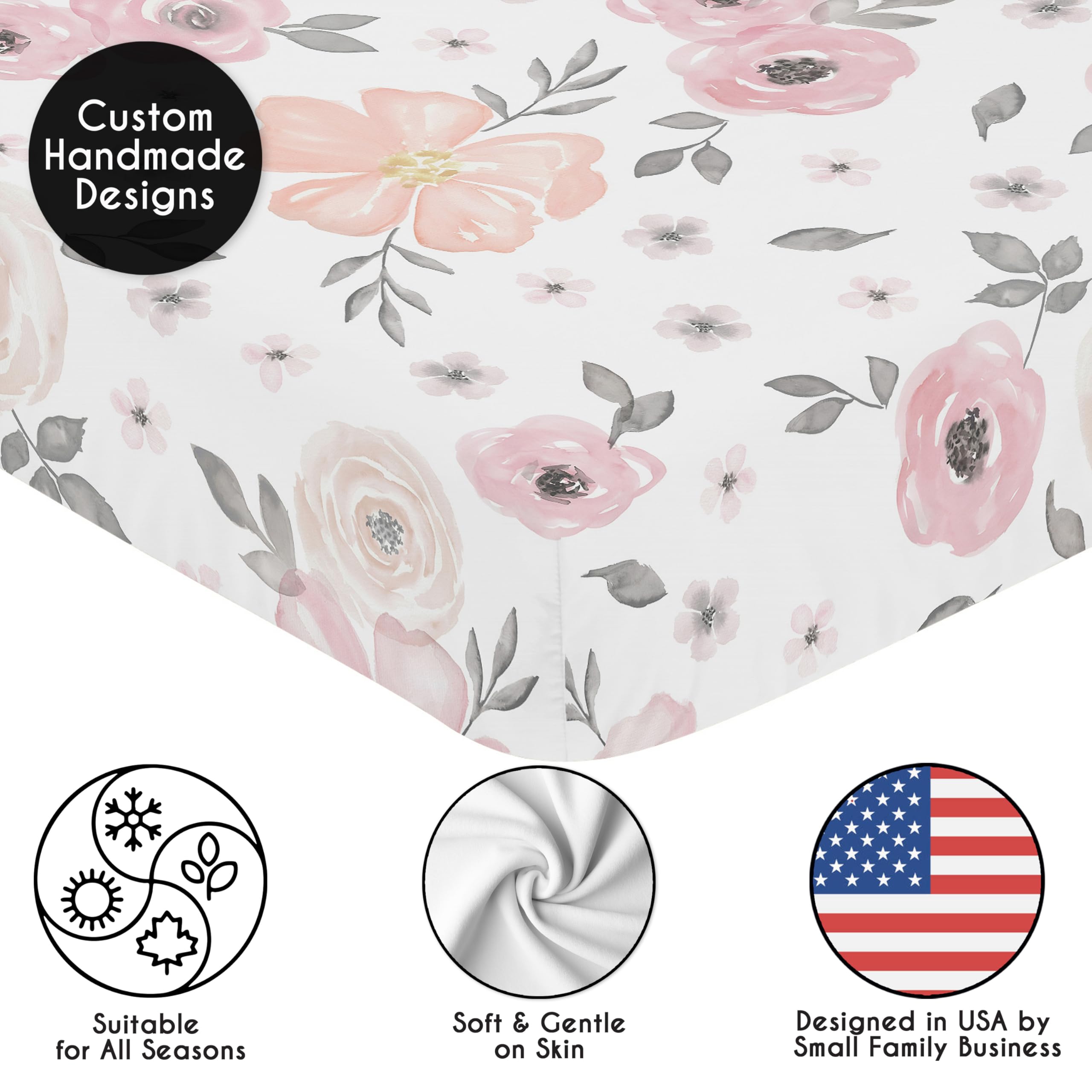 DESIGNED IN THE USA: By real parents who understand the need for comfort, practicality, and style. Sweet Jojo Designs is a small, women owned business. The mom's on our team know a crib mattress sheet is first priority for your baby essentials to ensure a restful night of sleep. We use top fabrics and designs to create soft crib sheets that are stretchy and comfortable for your infant or toddler. We've studied the latest trends in floral crib sheets for baby girl to bring you the finest product.