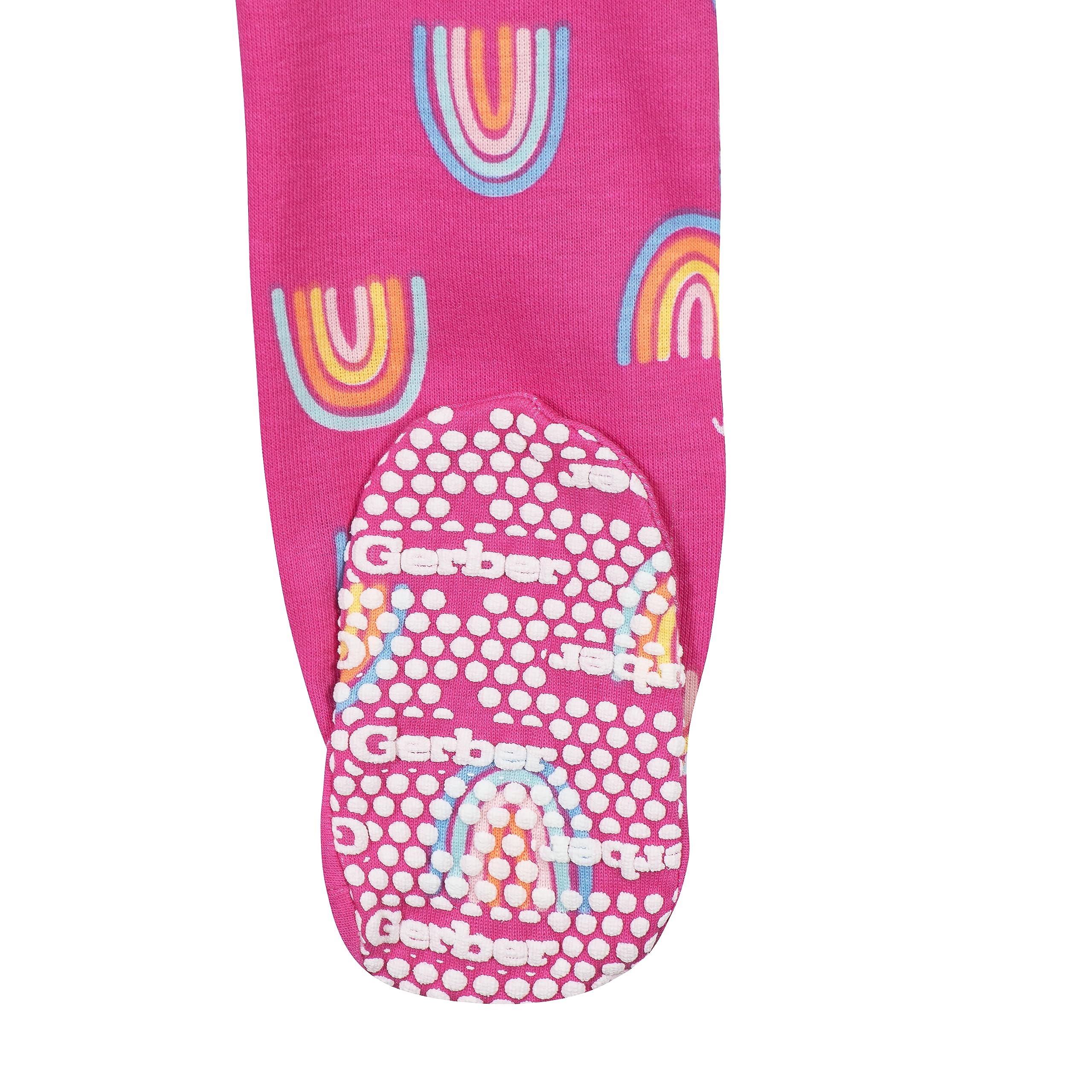 Description Bedtime is plenty of fun with this baby girls' 2-Pack footed unionsuits set, which uses imaginative prints and soft colors. Included in this set is two long sleeve footed unionsuits. She'll love how soft and cozy the 100% cotton rib feels against her skin as she drifts off to sleep. Diaper changes are easy peasy thanks to the neck-to-toe zipper. Sleep is safer because of the snug fit Of these garments. The easy care fabric makes laundry day hassle-free for busy moms. Gerber offers spectacular value with outstanding quality you can trust for your baby. Knit Weave Type. Special Size Baby Girls