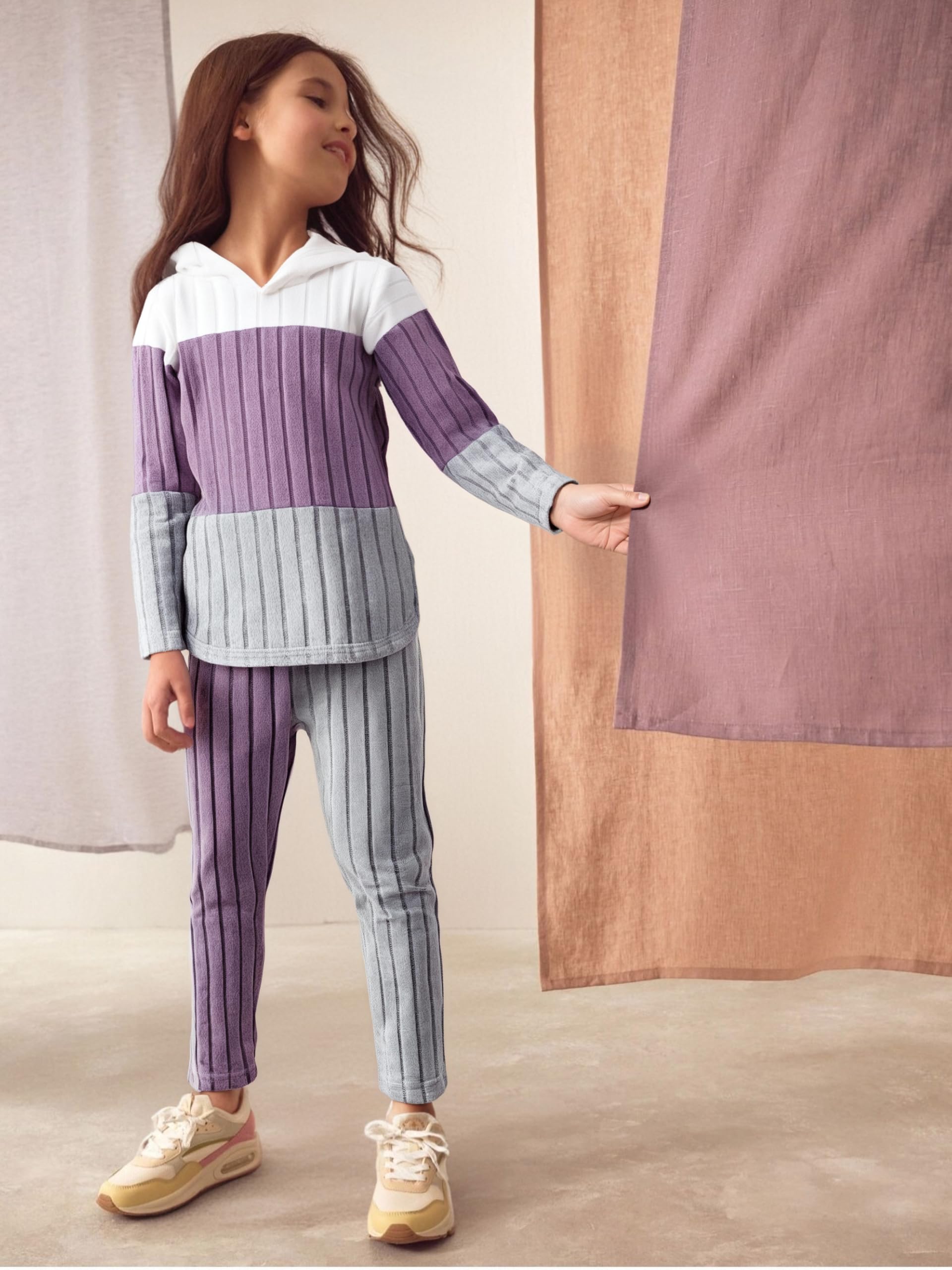 Style: Features a cute colorblock ribbed pullover top and matching plaid pants. This girls pull-on sweater set blends fashion and comfort for everyday wear