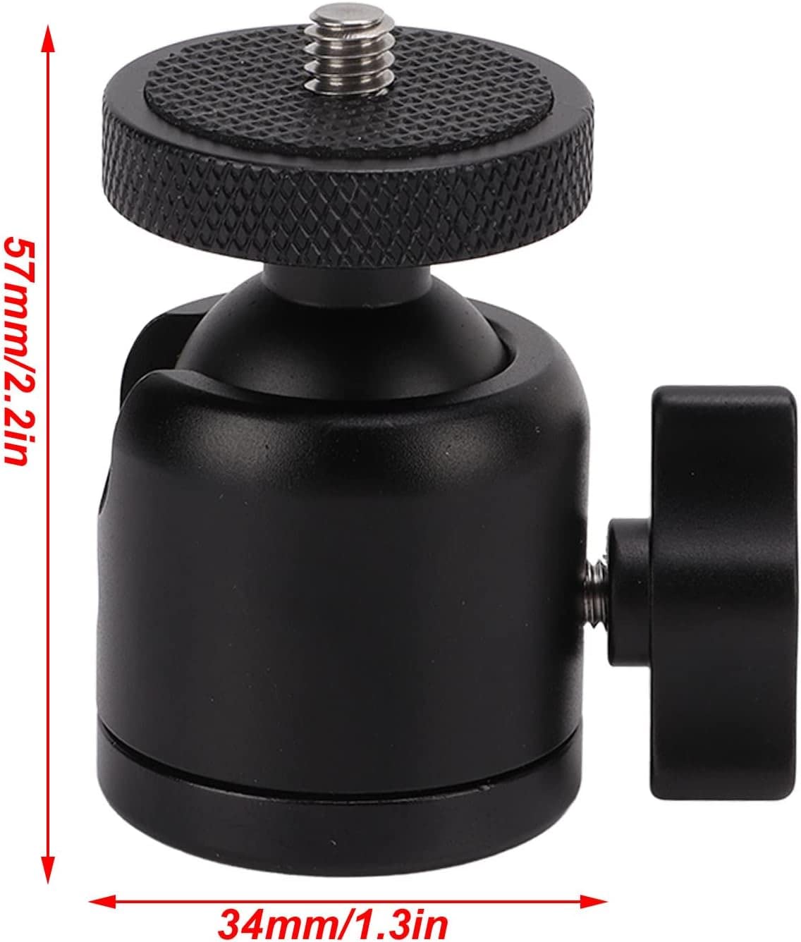 Upgrade Metal Ball-Head Adapter: Height 2.5 inches x Diameter 1.4 inches; Full body maded by Alloy Aluminum, Rotating Smoothly and No Lagging; comes with 1/4''-20 thread and 1/4''-20 interface at bottom for connection;