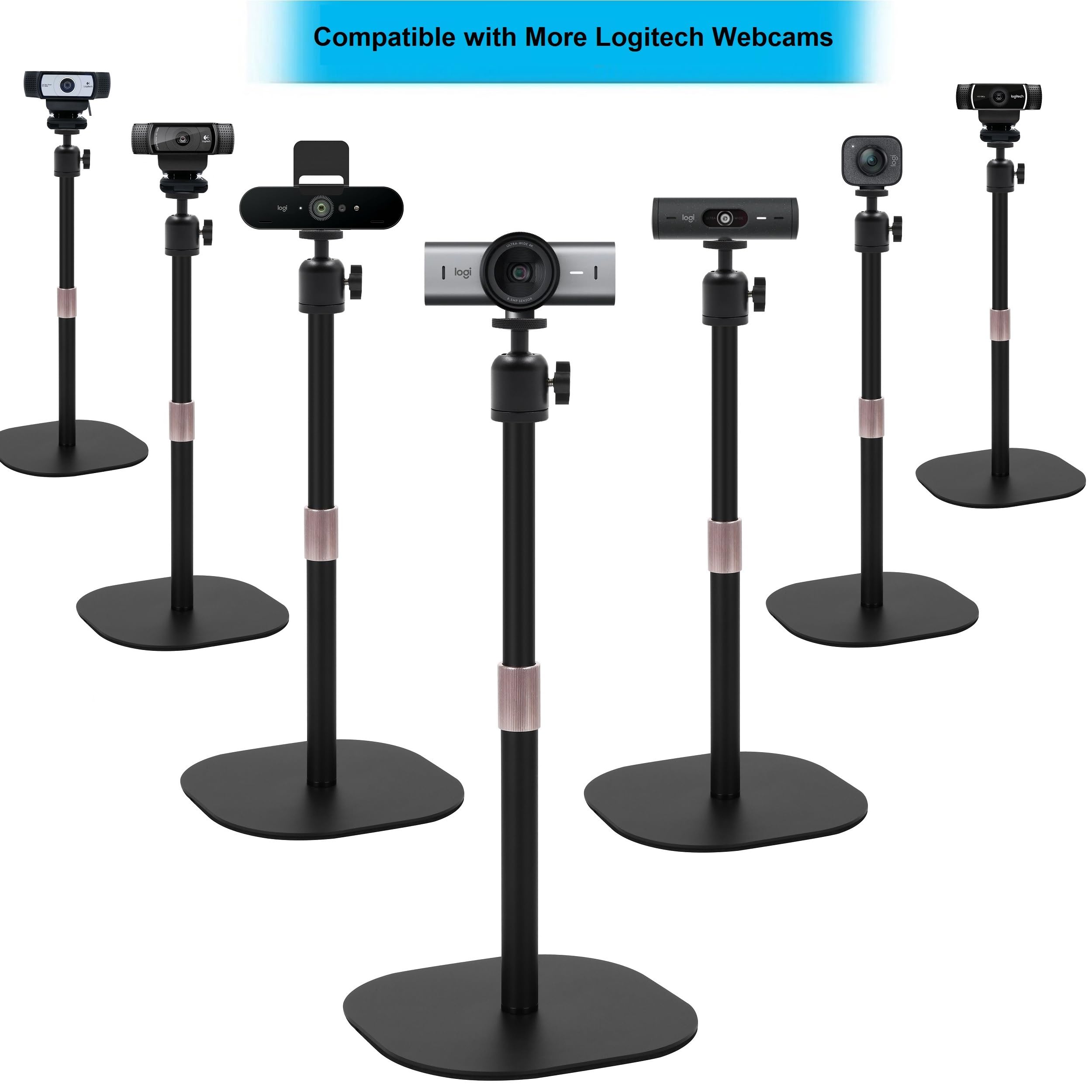 Tabletop Webcam Holder: comes with 1/4''-20 thread, compatible with Logitech/Razer/Elgato webcams and any webcams with 1/4''-20 interface.