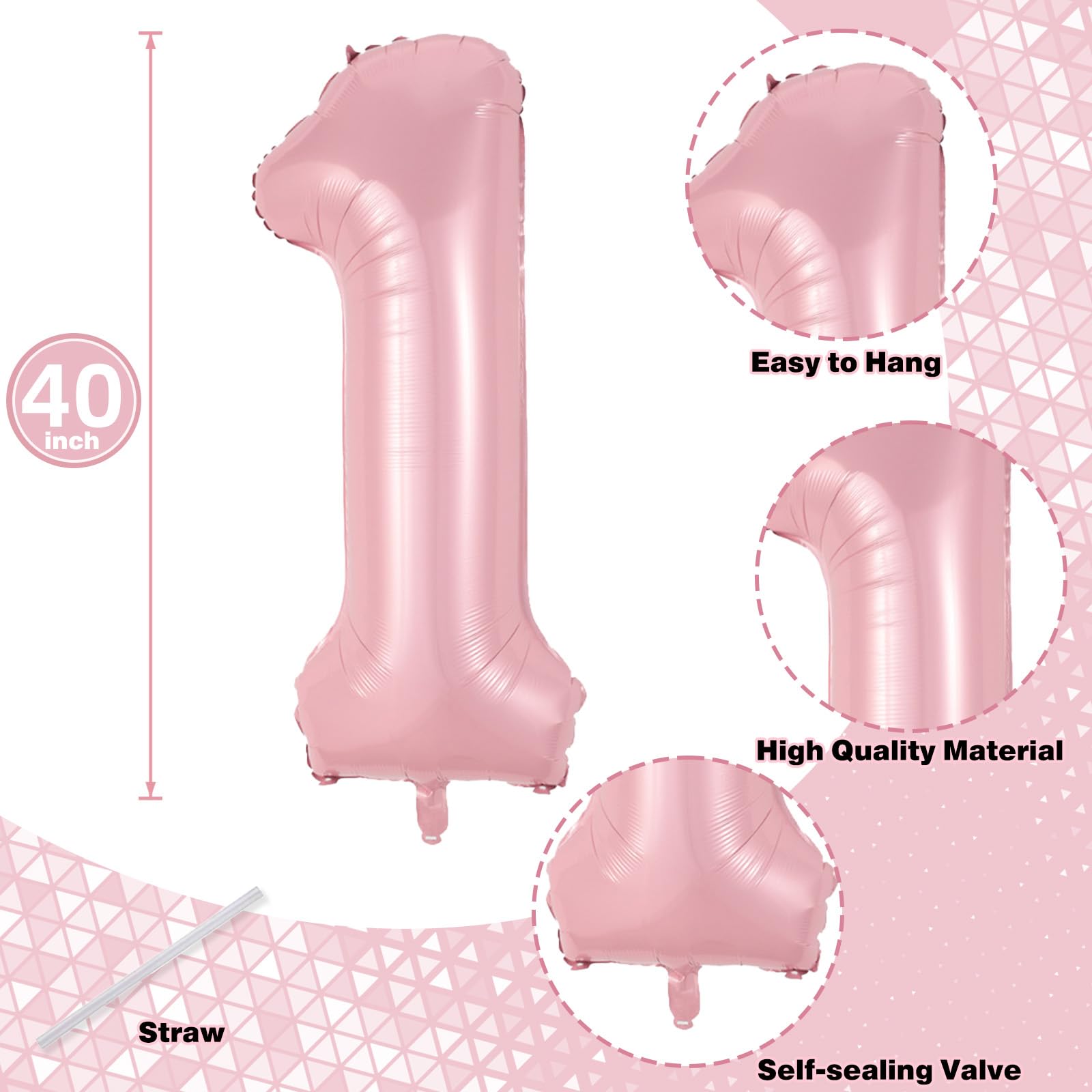 π Pastel Pink Number 11 Balloon: Our package included 40 inch number 1 & 1 balloon and 1pcs straw. Simply inflate the balloon using the straw, and you're ready to party! Light pink number foil balloons are the best for girls birthday party decoration.