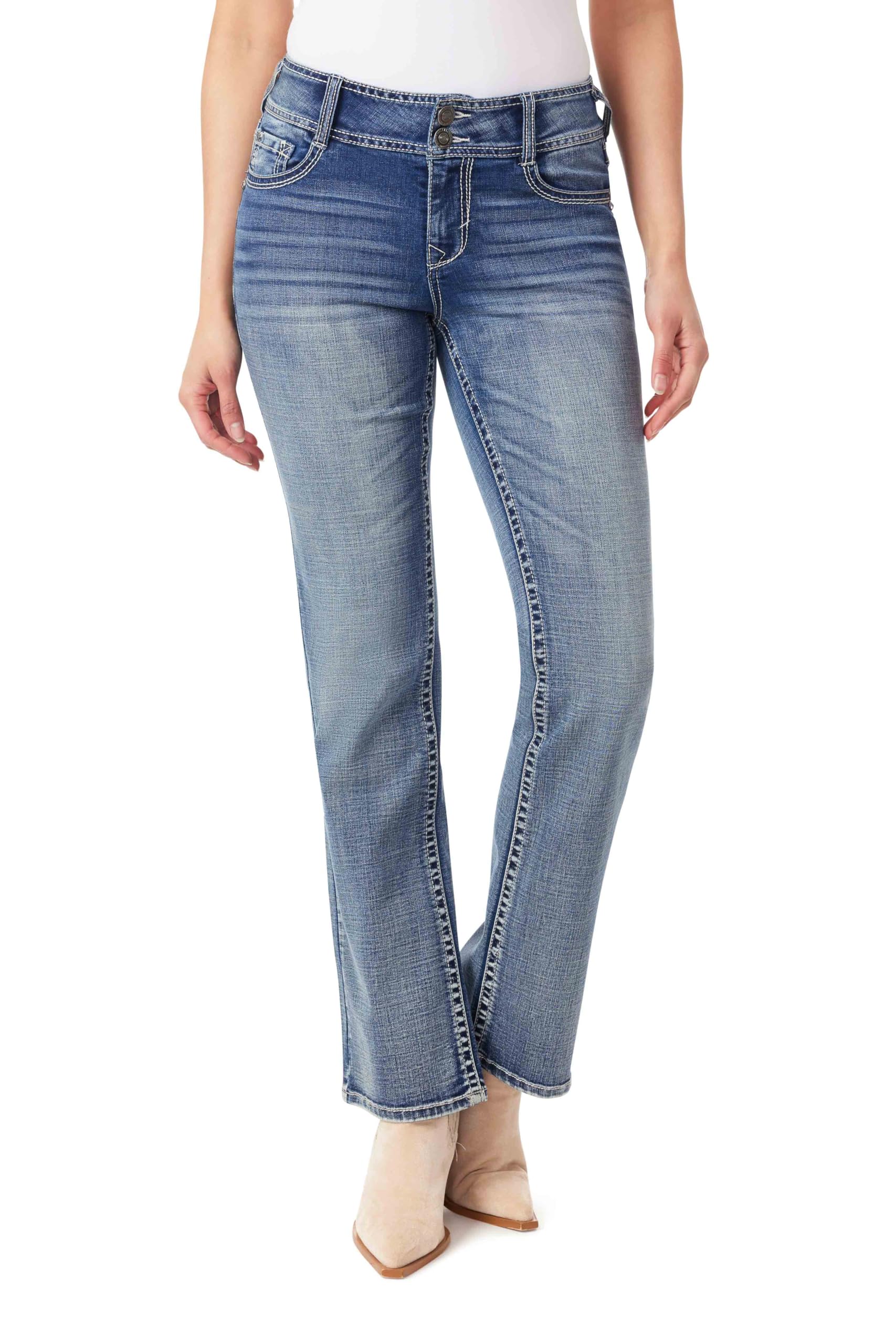Description WallFlower boot cut jeans for woman mid rise curvy jeans for women in Insta Stretch denim jeans for women bootcut is our stretchiest ever, with outstanding recovery that keeps your jeans for women looking amazing all day. With the premium feel and endless holding power of these boot cut jeans women youโve definitely found your new favorite womans jeans. Maintain your cool and casual style whether you're on horseback or heading back to school. Style our jeans for women bootcut in 90s, jeans for women trendy y2k aesthetic, festival and everyday stretchy boot cut jeans for women looks. The versatility also makes these great travel pants women. Find petite women's bootcut jeans, straight size women jeans, mid size womens mid rise jeans and plus size womens bootcut jeans, in 3 different inseam lengths. Made for Every Body. Period. WallFlower makes women jeans bootcut that feature a contoured waist in mid rise boot cut jeans for woman so you get a flattering, gap-free fit. These are jeans designed with roomier hips and thighs for ultimate comfort. Plus, butt lifting jeans for women for that extra oomph and 5-pocket styling adds a touch of classic boot cut jeans for women style.