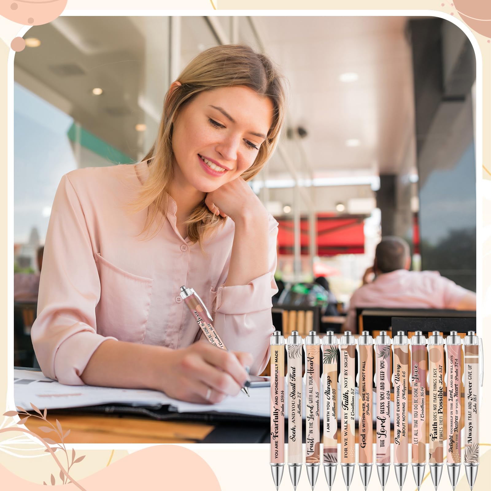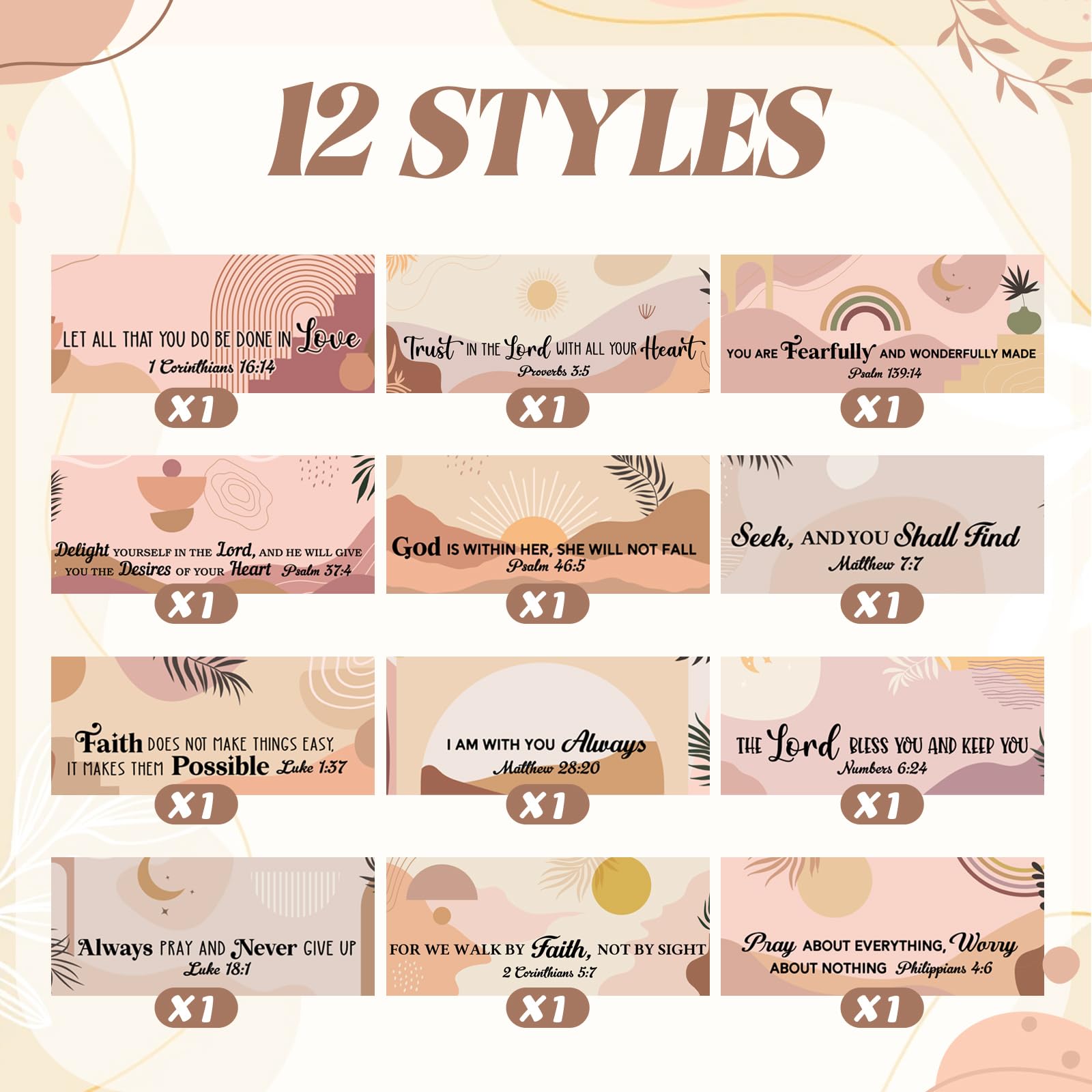 Enough to Meet Your Needs: you will receive 12 pieces of boho themed bible verse ballpoint pens in 12 different patterns, positive and pretty, easy for you to use and replace daily, you can also share them with your family and friends